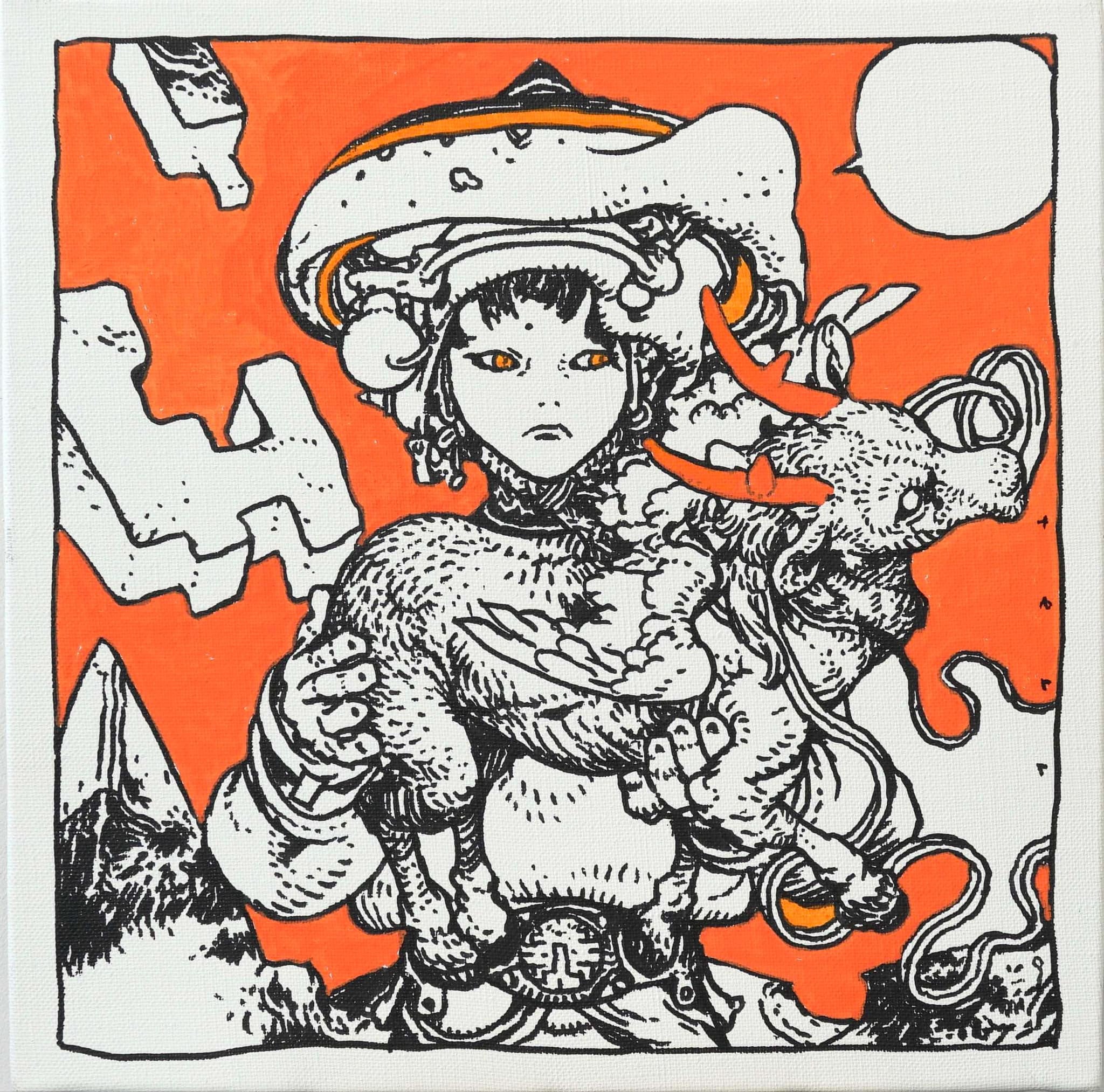 Mixed media on canvas.
