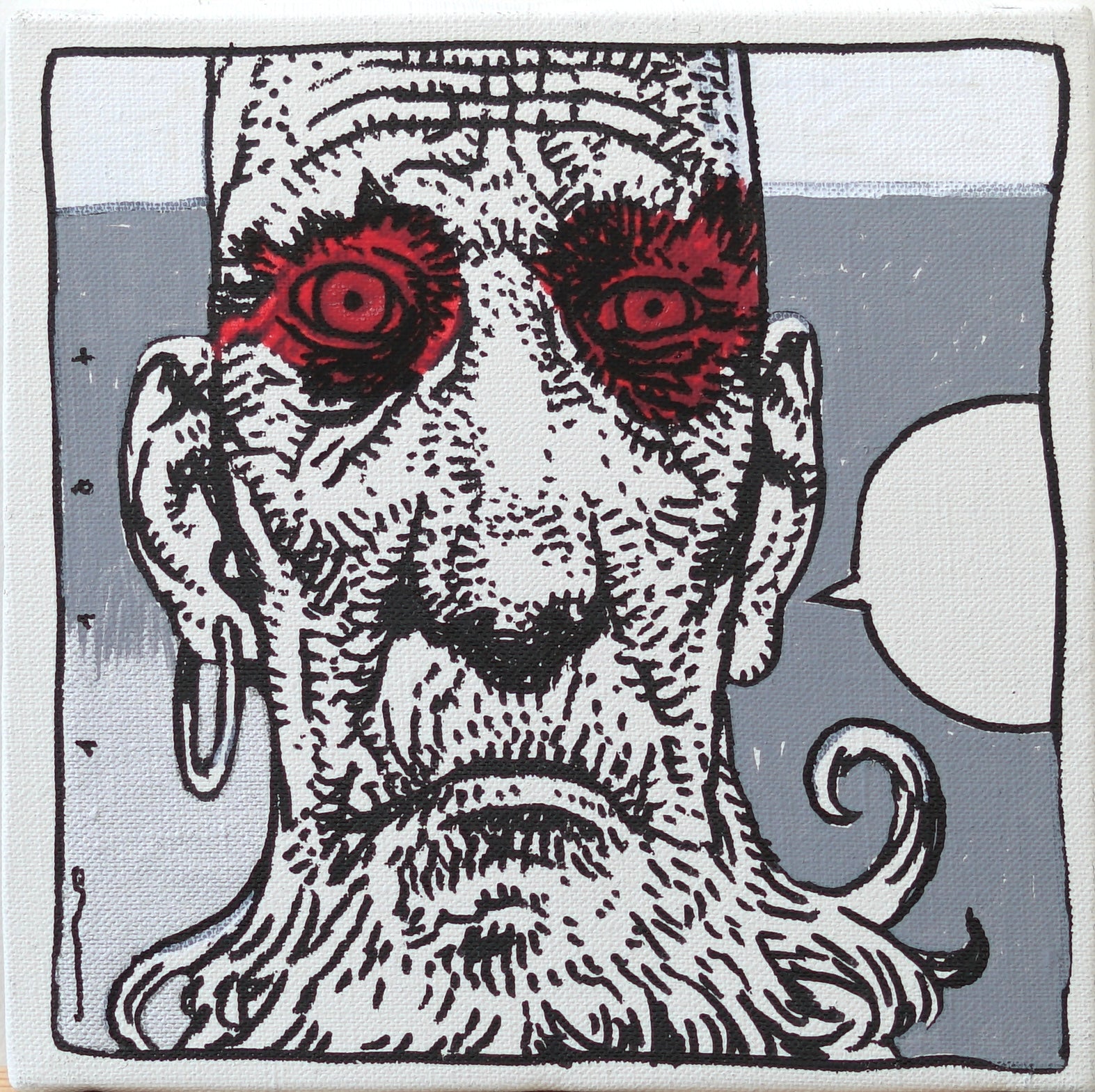 Mixed media on canvas.