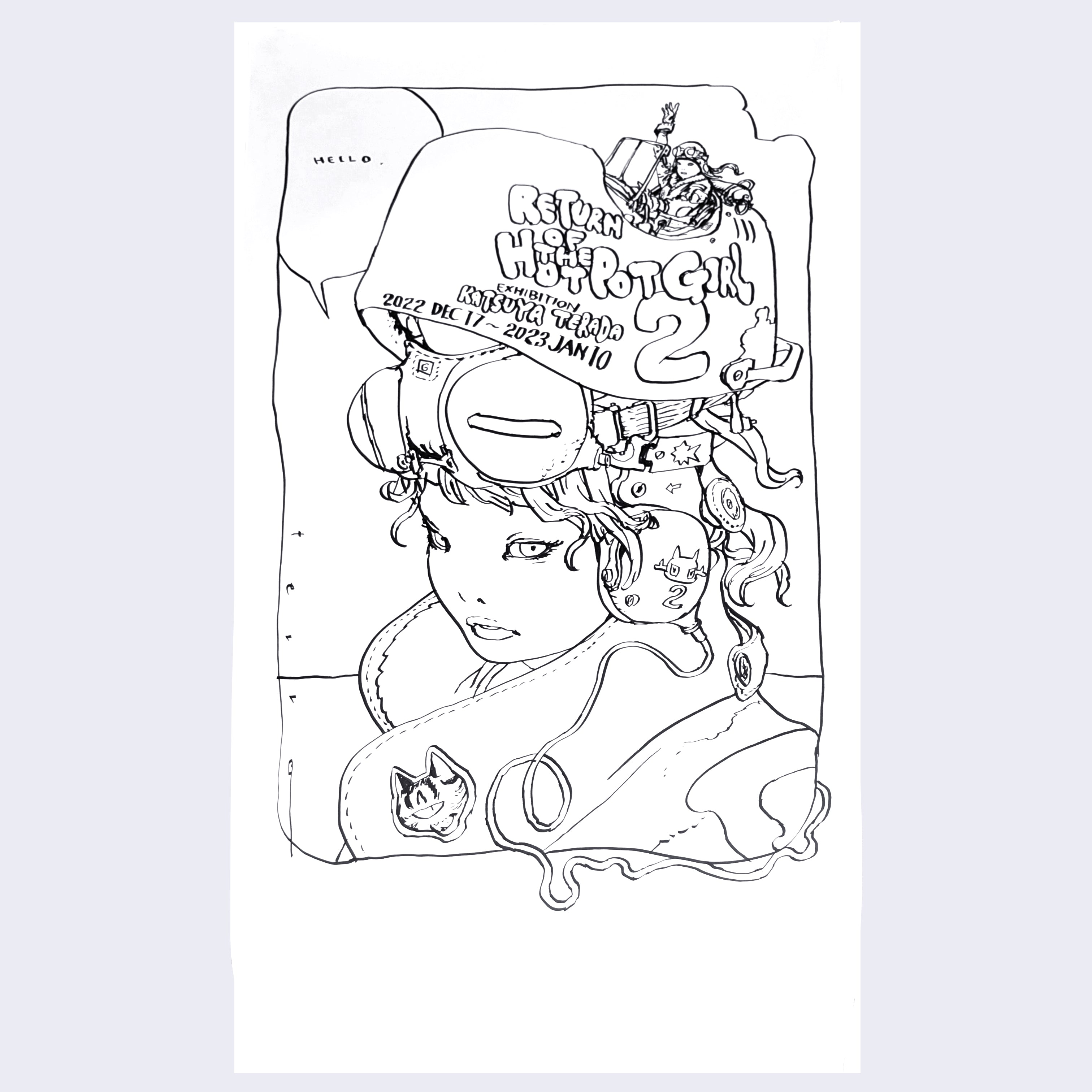 Katsuya Terada - Show Title Window Drawing - Return of the Hot Pot Girls 2 Exhibition 2023