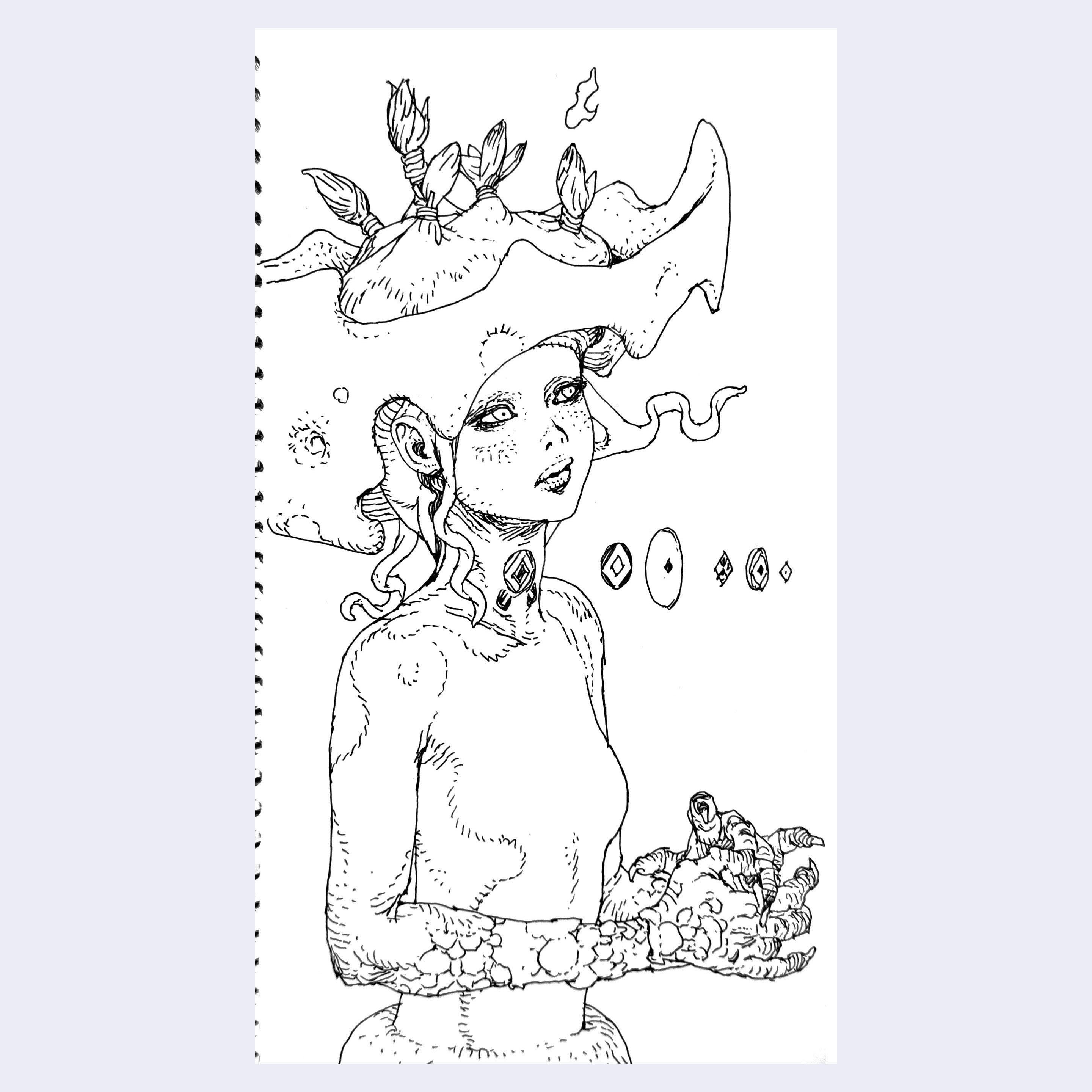 Ink on paper. Piece is framed.