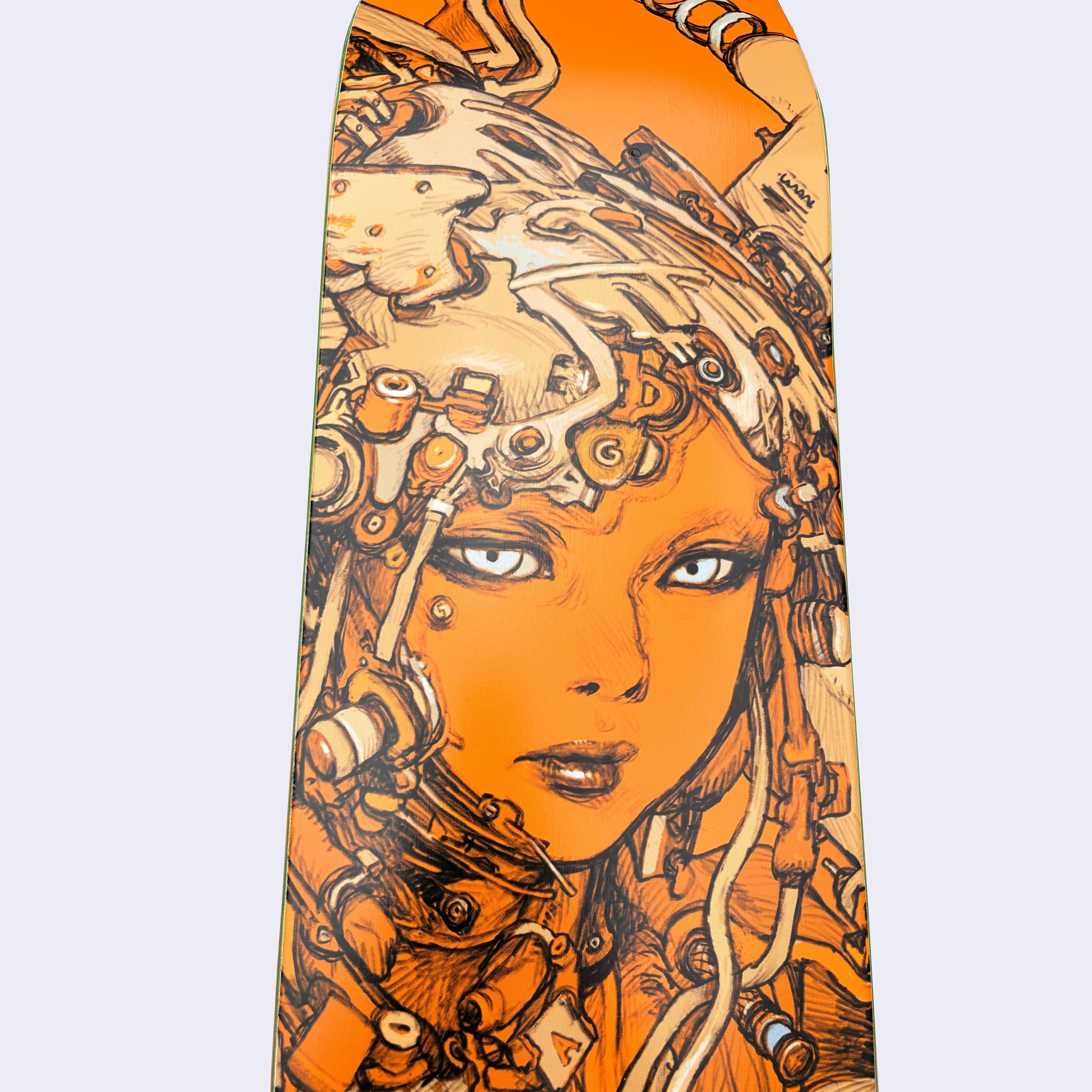 For 2025, the renowned artist Katsuya Terada introduces new and awe inspiring artwork for this beautiful skate deck. With soft graphite like quality to the illustration and bright orange coloring, Terada's artwork looks beautiful as ever on this deck.