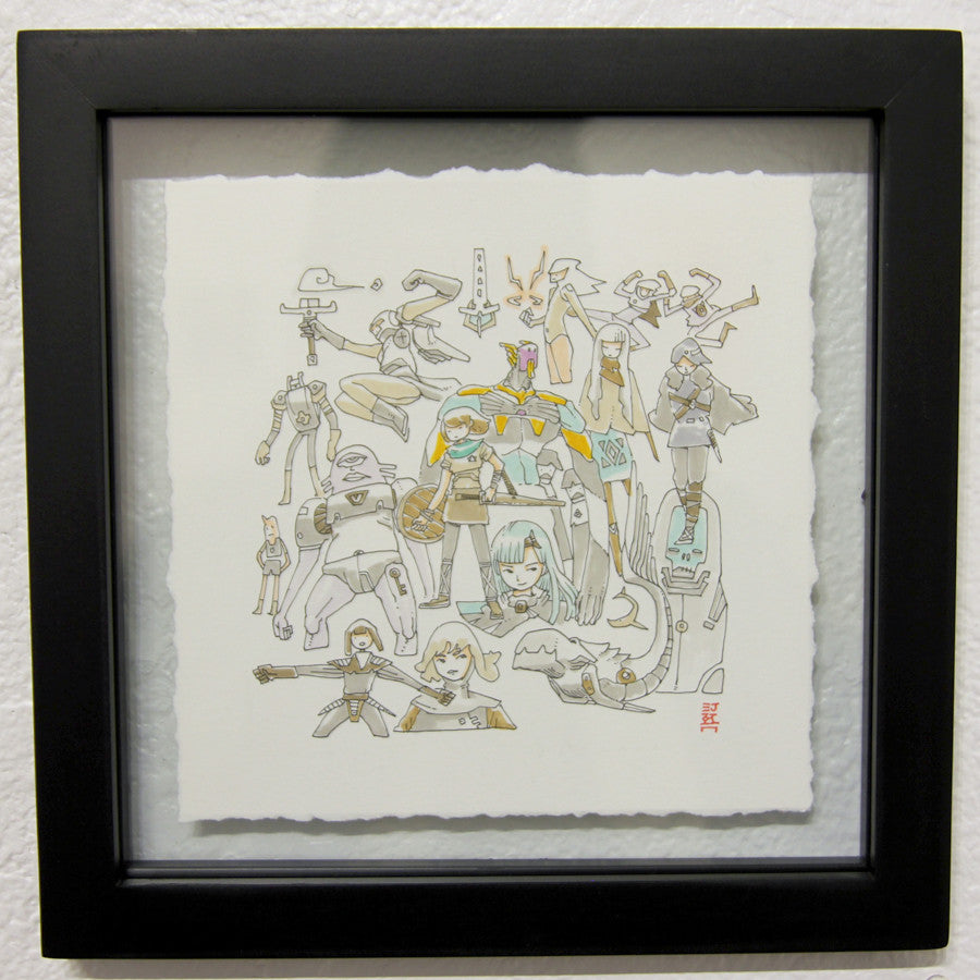 Art measures 6.25 x 6.25 x inches, frame measures 9.25 x 9.25 inches.