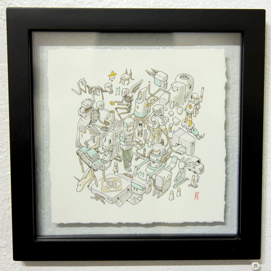 Art measures 6.25 x 6.25 x inches, frame measures 9.25 x 9.25 inches.