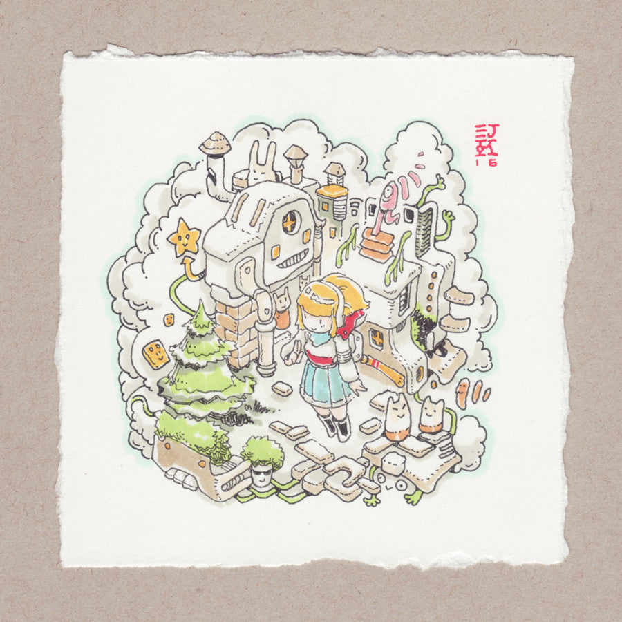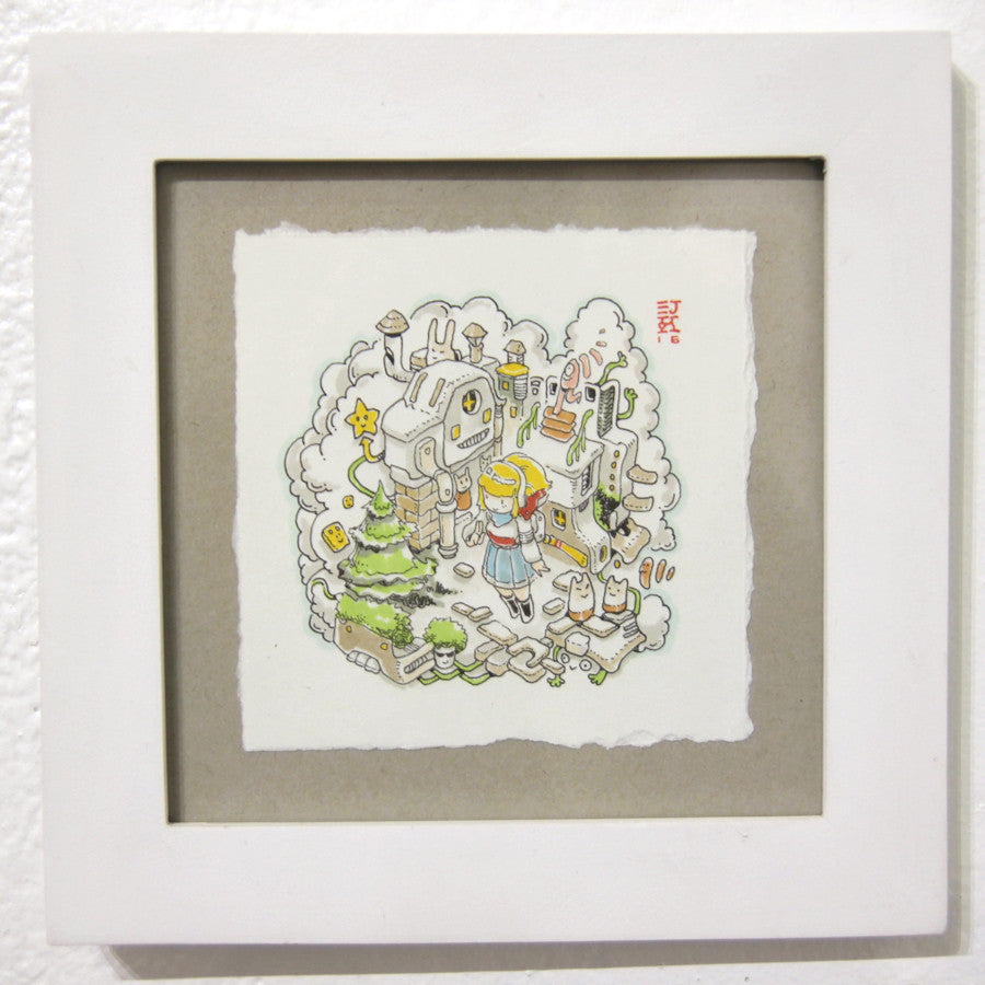 Art measures 3.5 x 3.5 x inches, frame measures 6.25 x 6.25 inches.