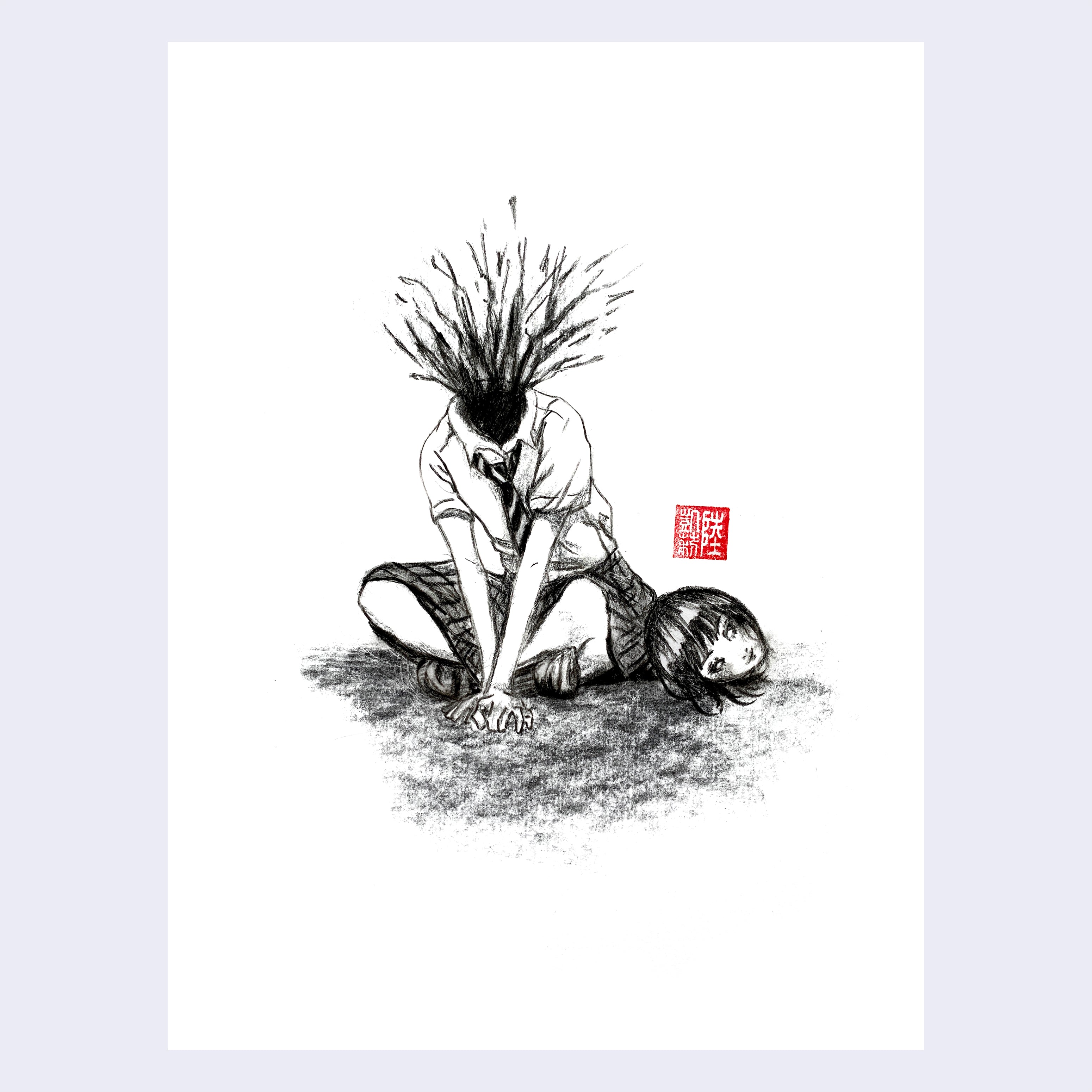 Charcoal on paper. Piece is framed.