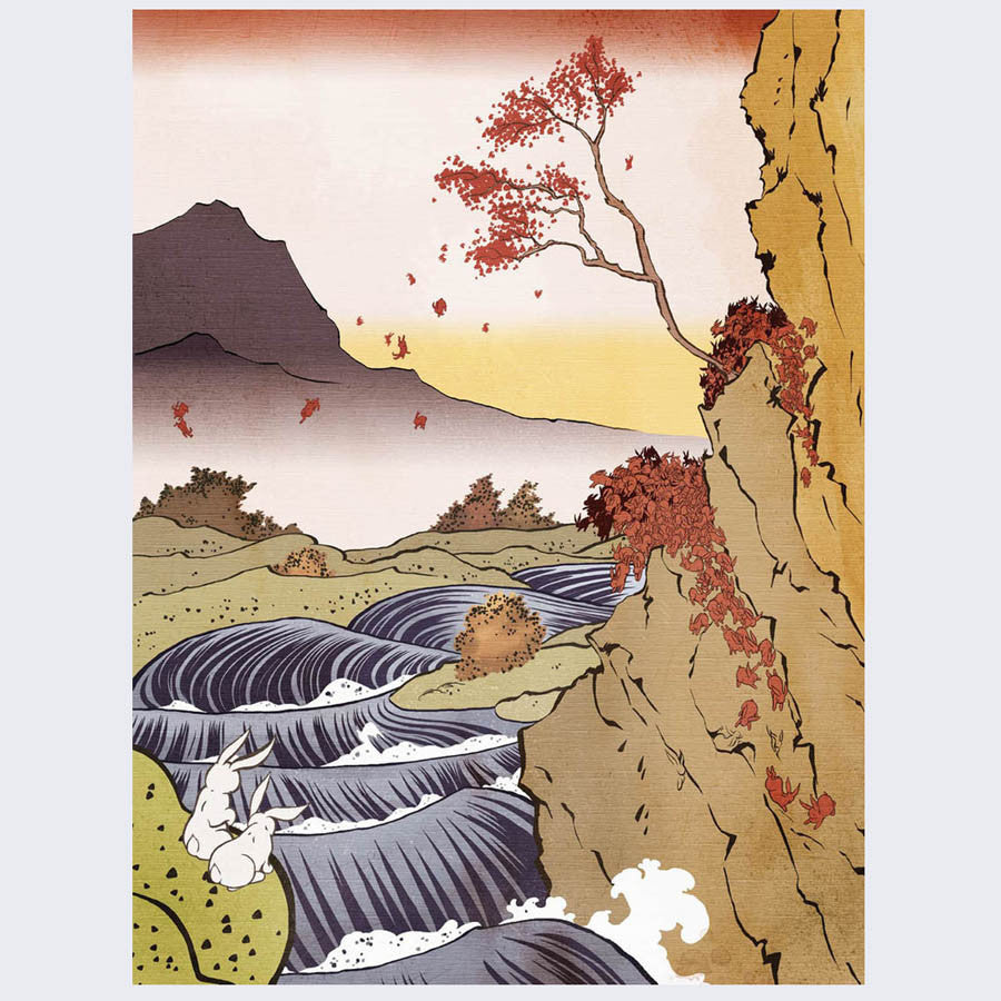 Another amazing print from the duo Kozyndan! Bunnies that make the leaves of this serene image. Open ended print.