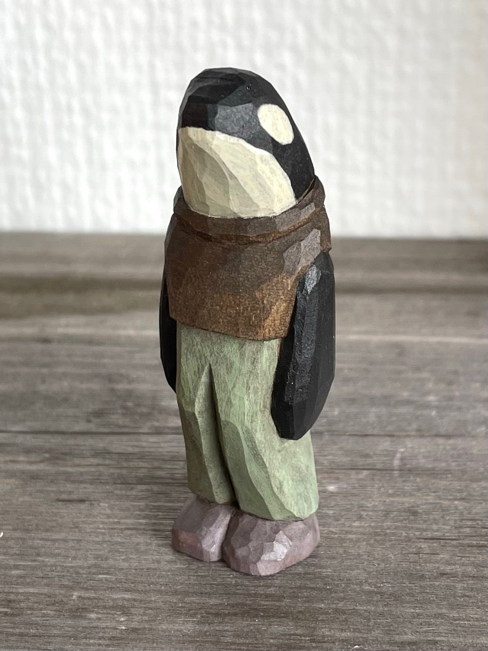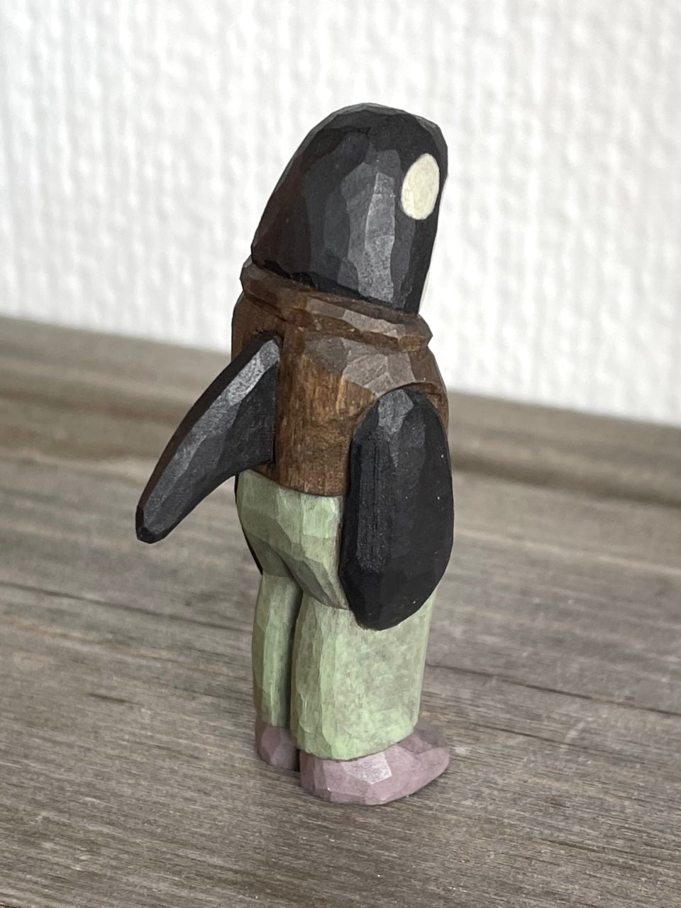 Basswood, wood stain, acrylic paint, beeswax finish.