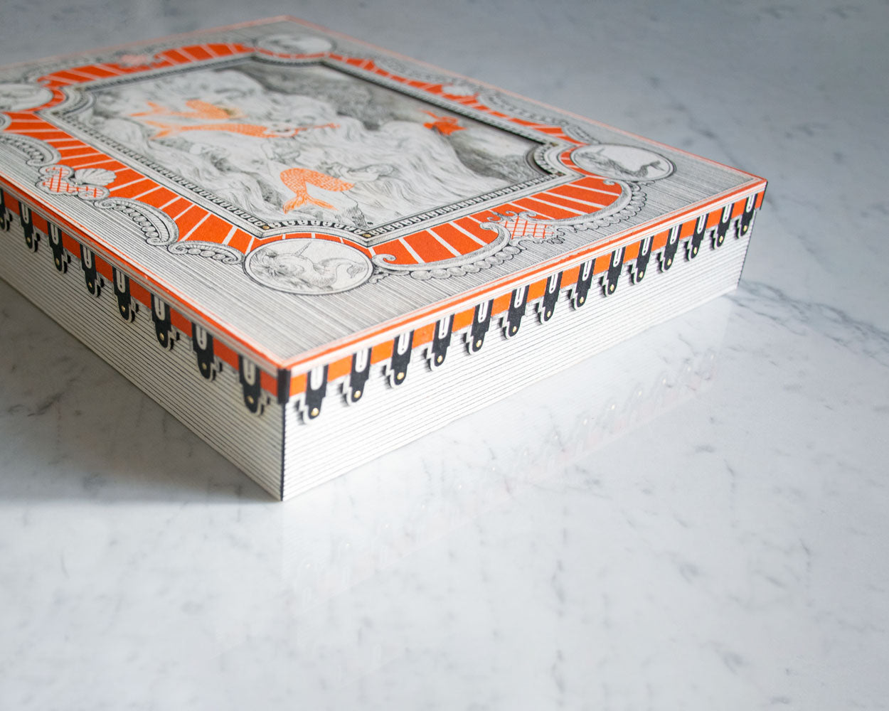 Pen and ink on 300lbs Arches watercolor paper with gold leaf details, mounted on wood panel.