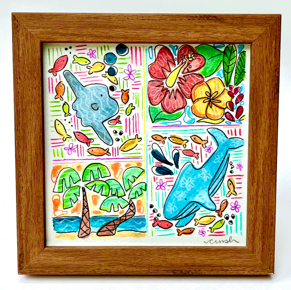 Artwork measures 6 x 6 inches, framed to 7.25 x 7.25 inches.