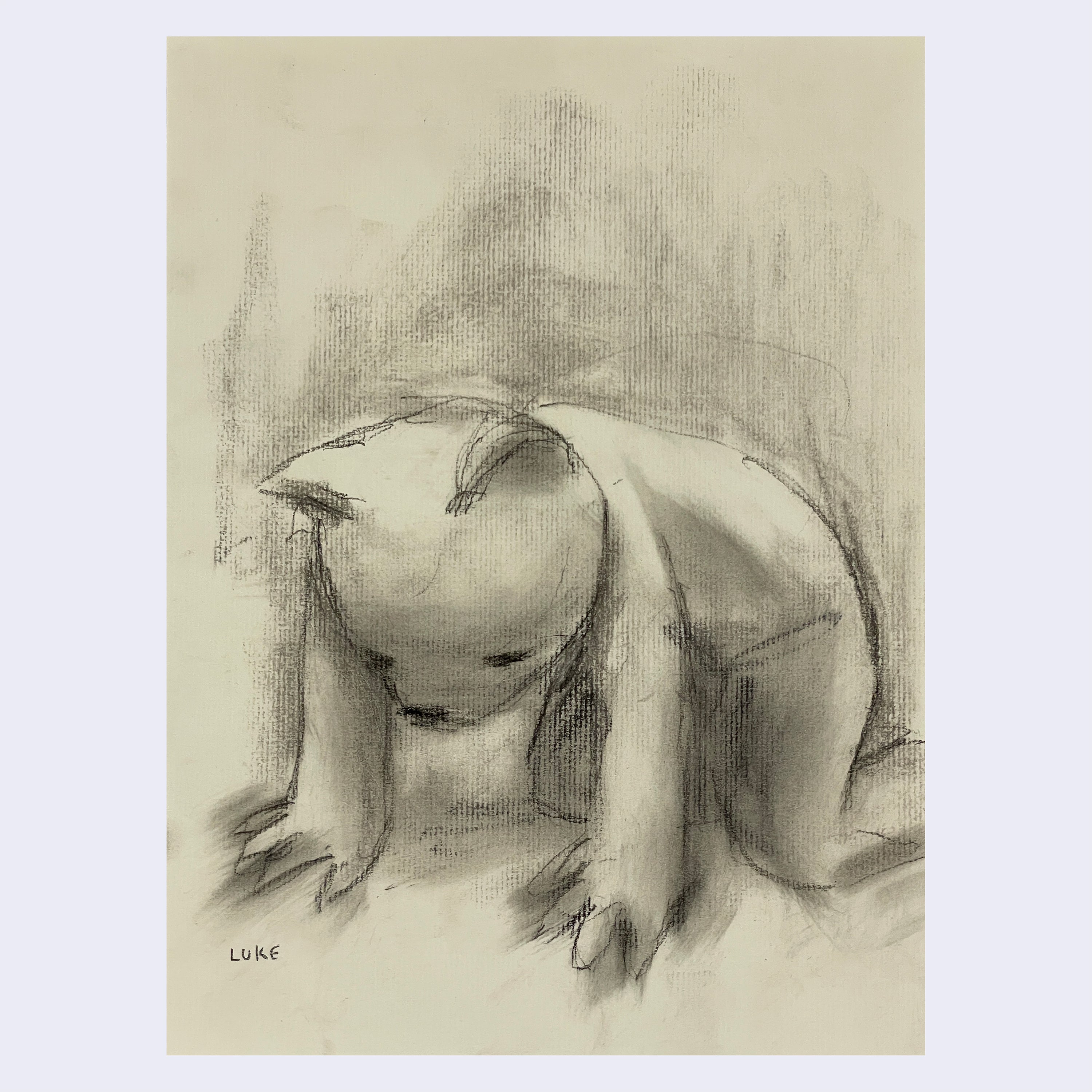 Charcoal on off-white paper. Piece is unframed.