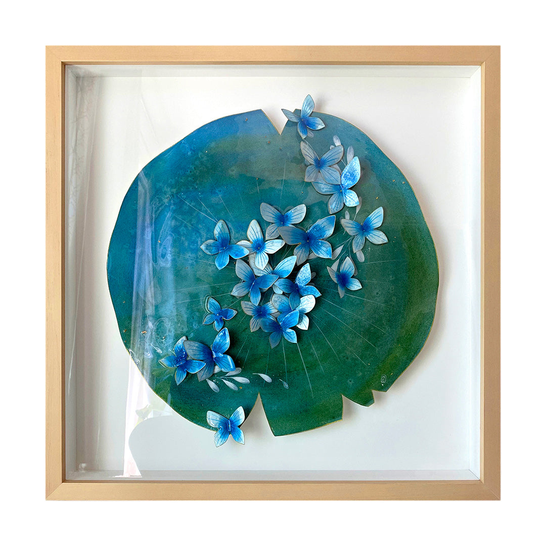 Artwork measures 14 x 14 inches, framed to 19.5 x 19.5 inches.