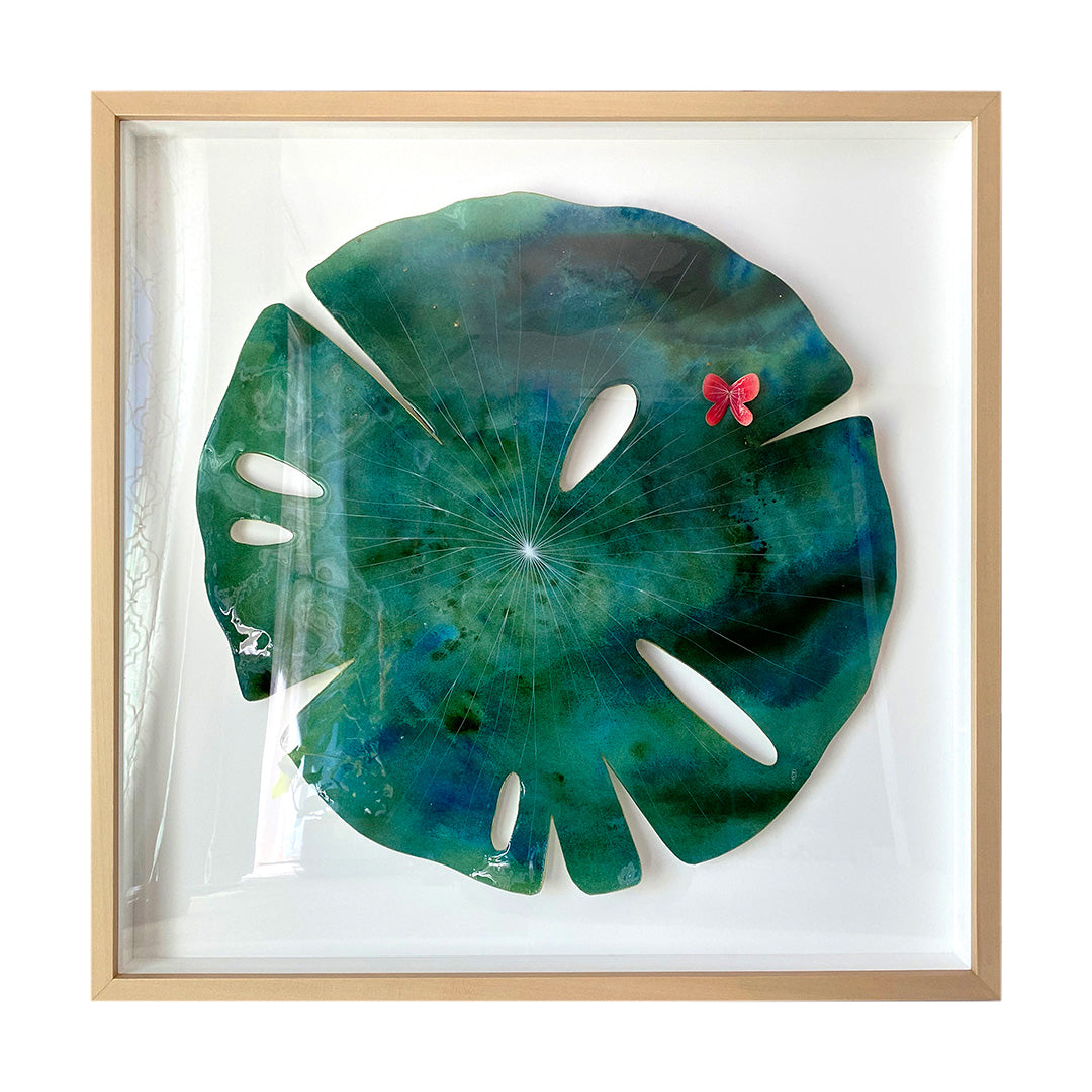 Resin, watercolor on paper. Piece is framed.