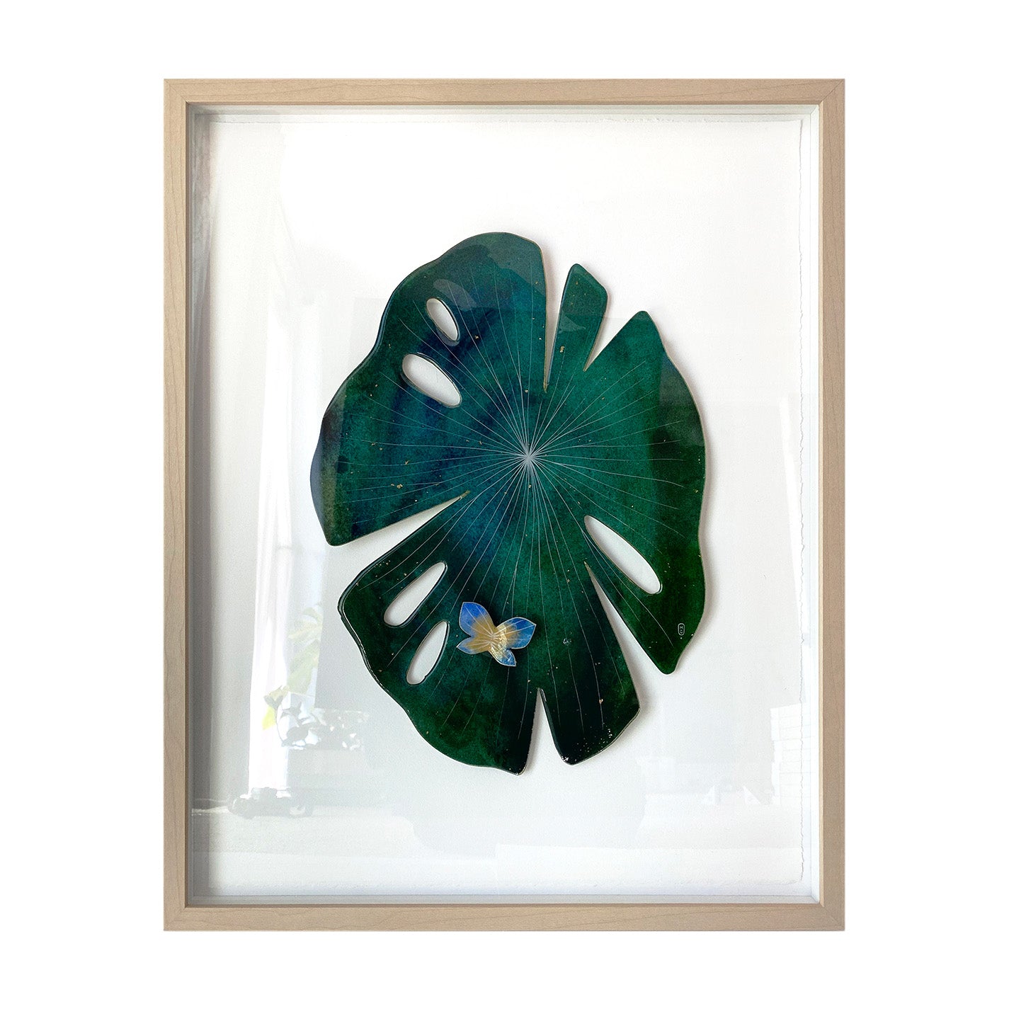 Resin, watercolor on paper. Piece is framed.