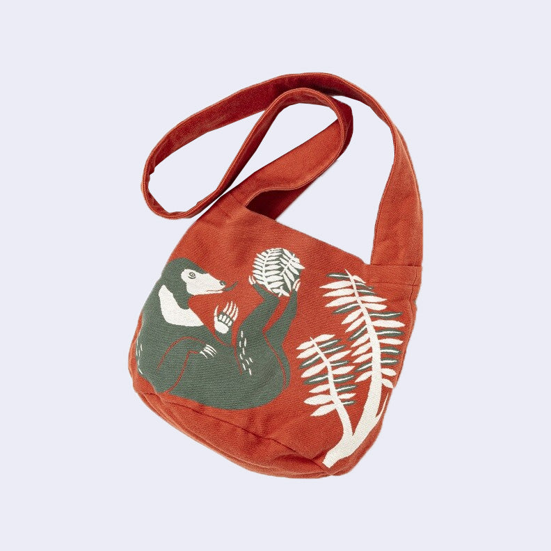 This thick, tightly woven cotton shoulder bag features a convenient inner pocket with a smooth Inner lining. A collaboration between artist MoritaMiW and Kusubashi Monori, a Japanese towel maker. MiW's imagery brings each accessory to life and will make a great addition to any closet.