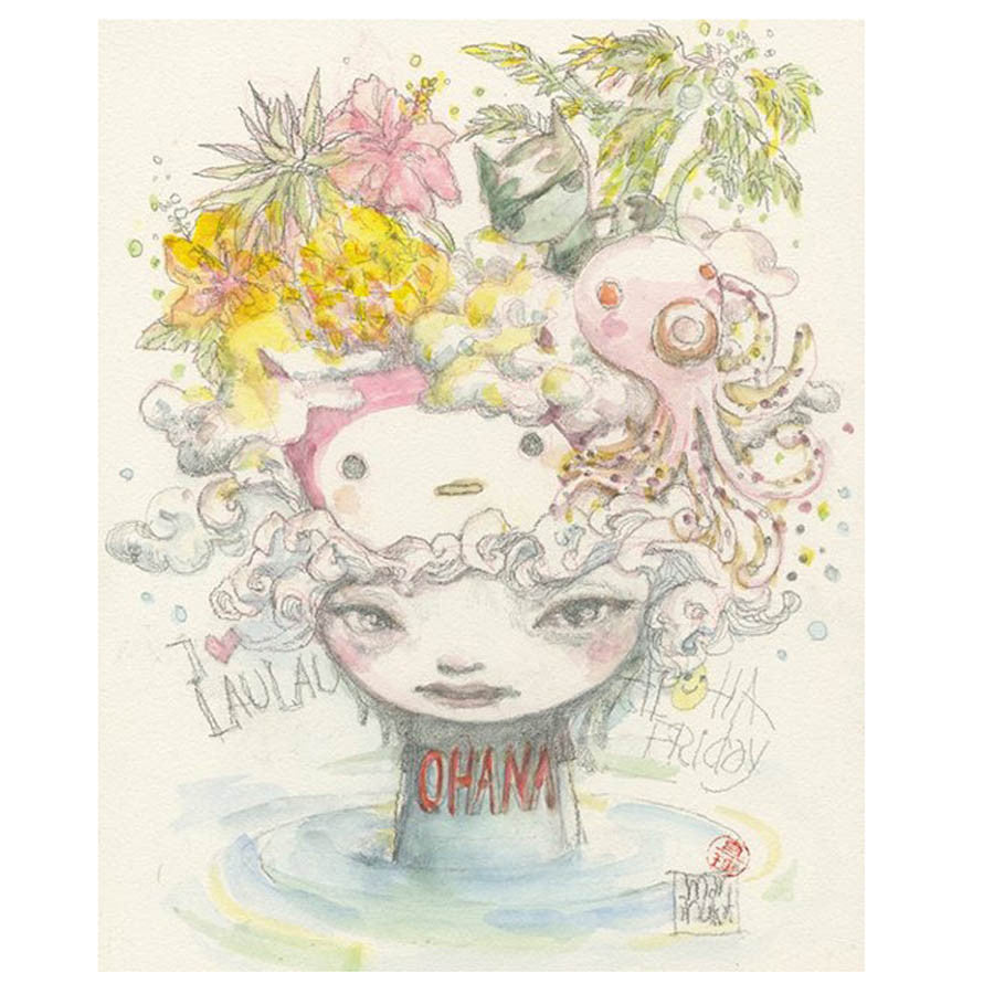 Artwork remains on the wall. When art is returned from Hawaii after the show ends, your purchase will ship to you.