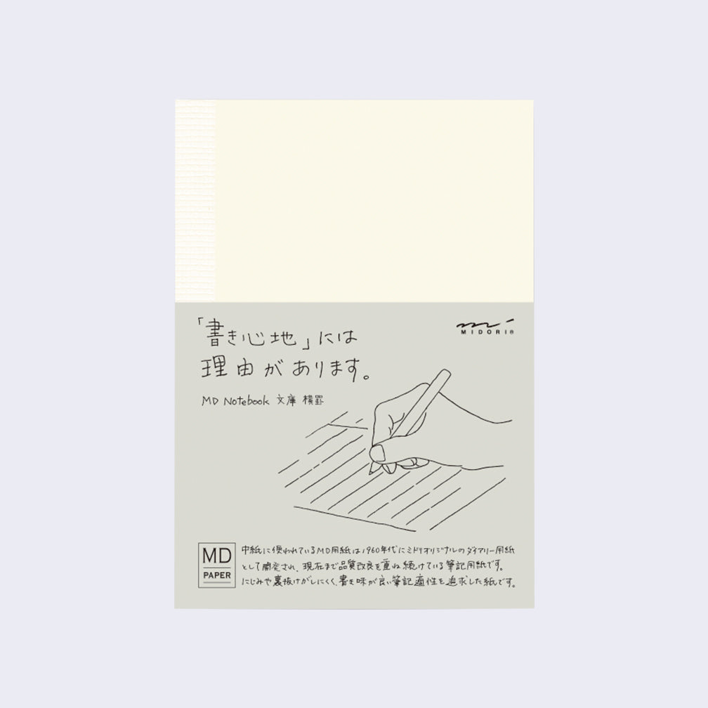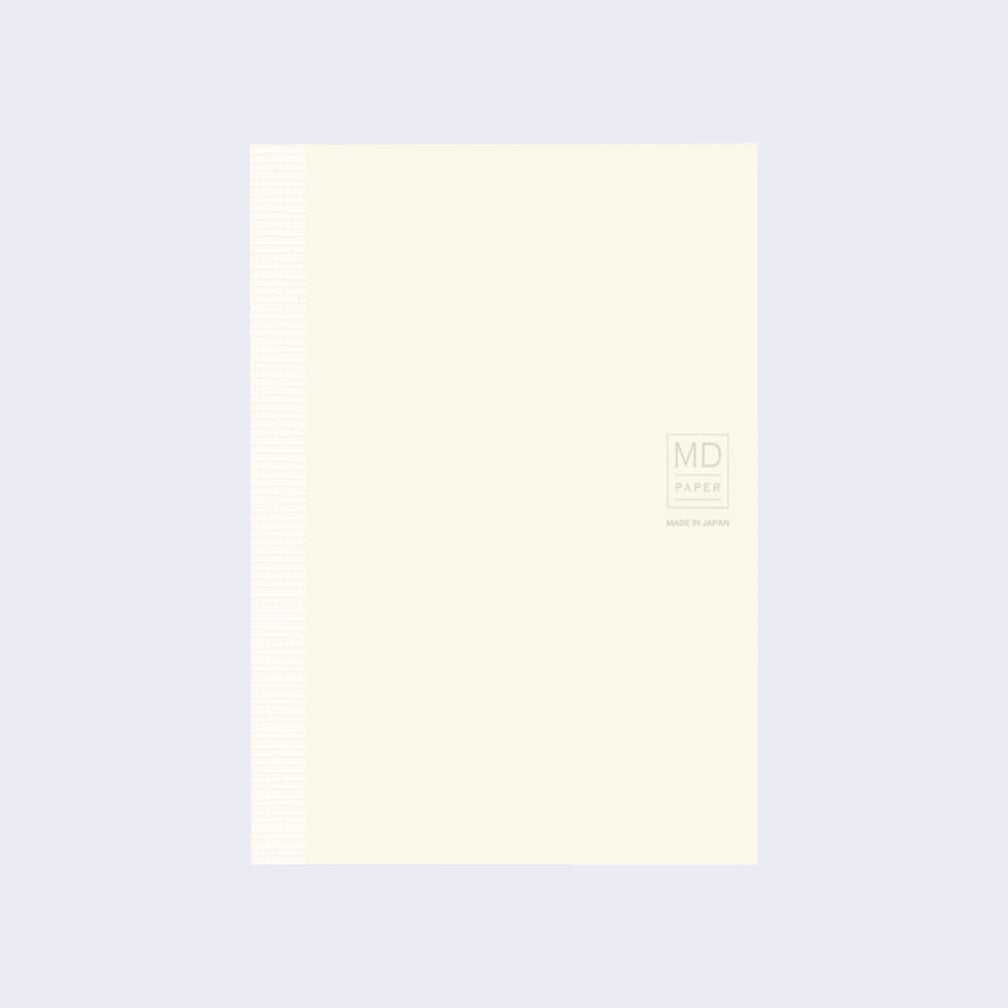 Cream colored bound notebook with a small design on the right that reads "MD Paper Made in Japan"
