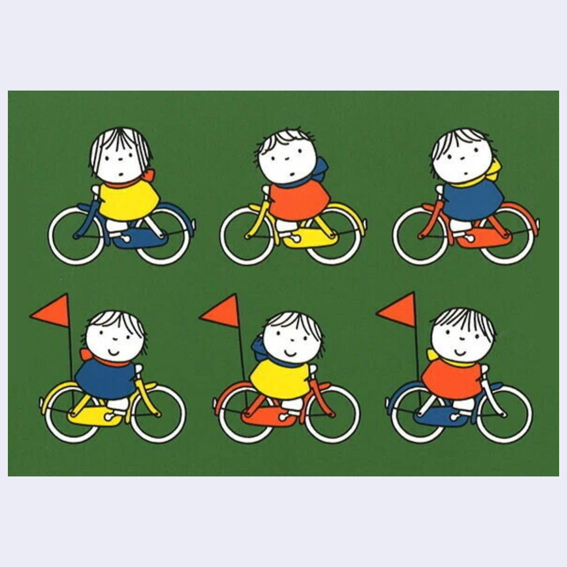 Featuring timeless illustrations from artist Dick Bruna, these Miffy & Friends postcards are perfect for sending to a loved one or keeping for yourself and sticking it on your wall! Can even be framed if you wanna get fancy with it! A group of children riding their bikes!