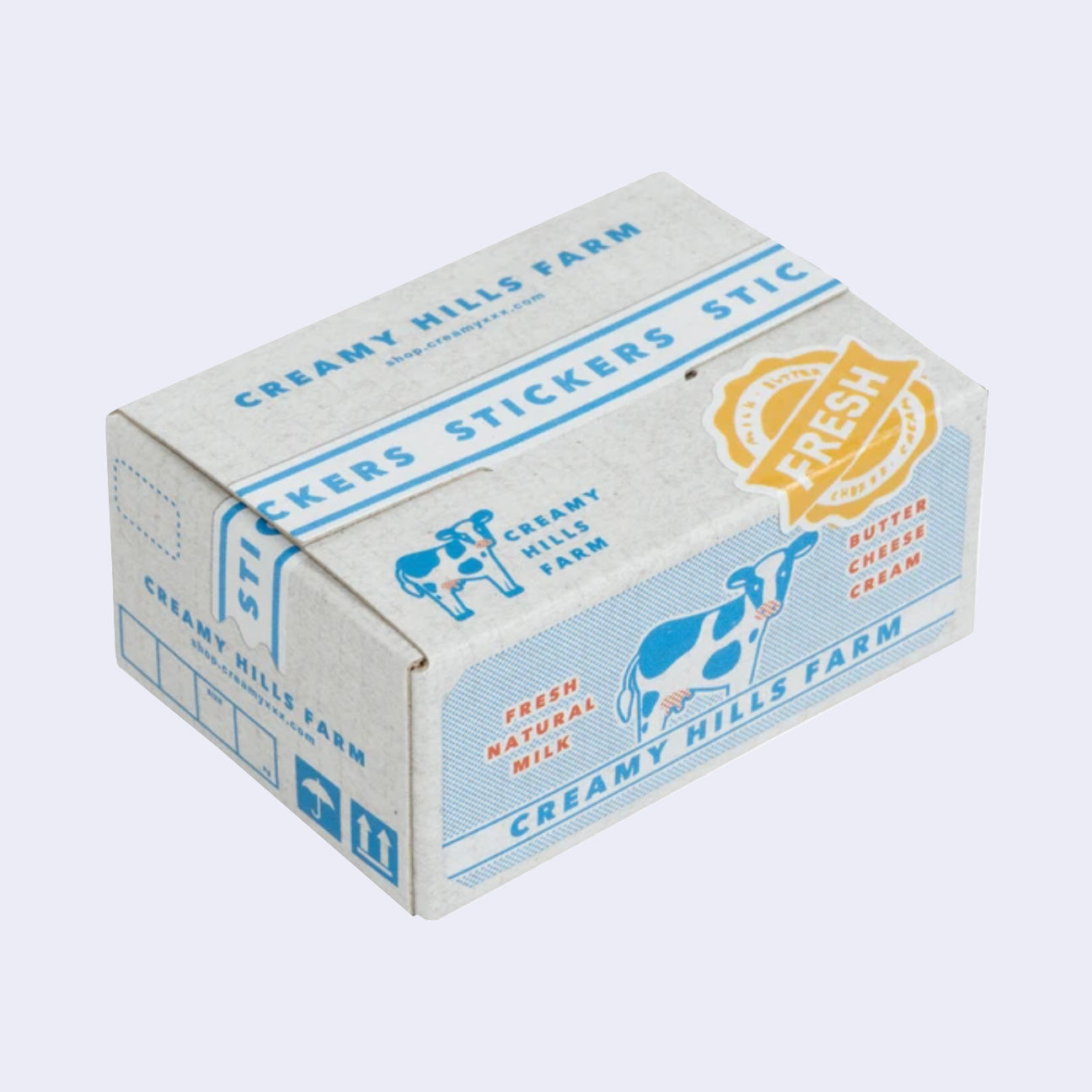Miniature Shipping Box Flake Sticker Set - Creamy Hills Dairy Farm (Milk)