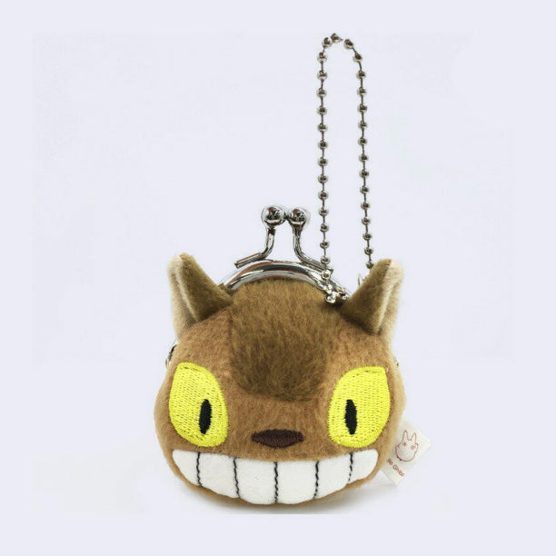 Straight from Hayao Miyazaki's My Neighbor Totoro! The lovable Catbus - in pouch form! Hide your small precious items in this small purse. Metal clasp with chain attachment.