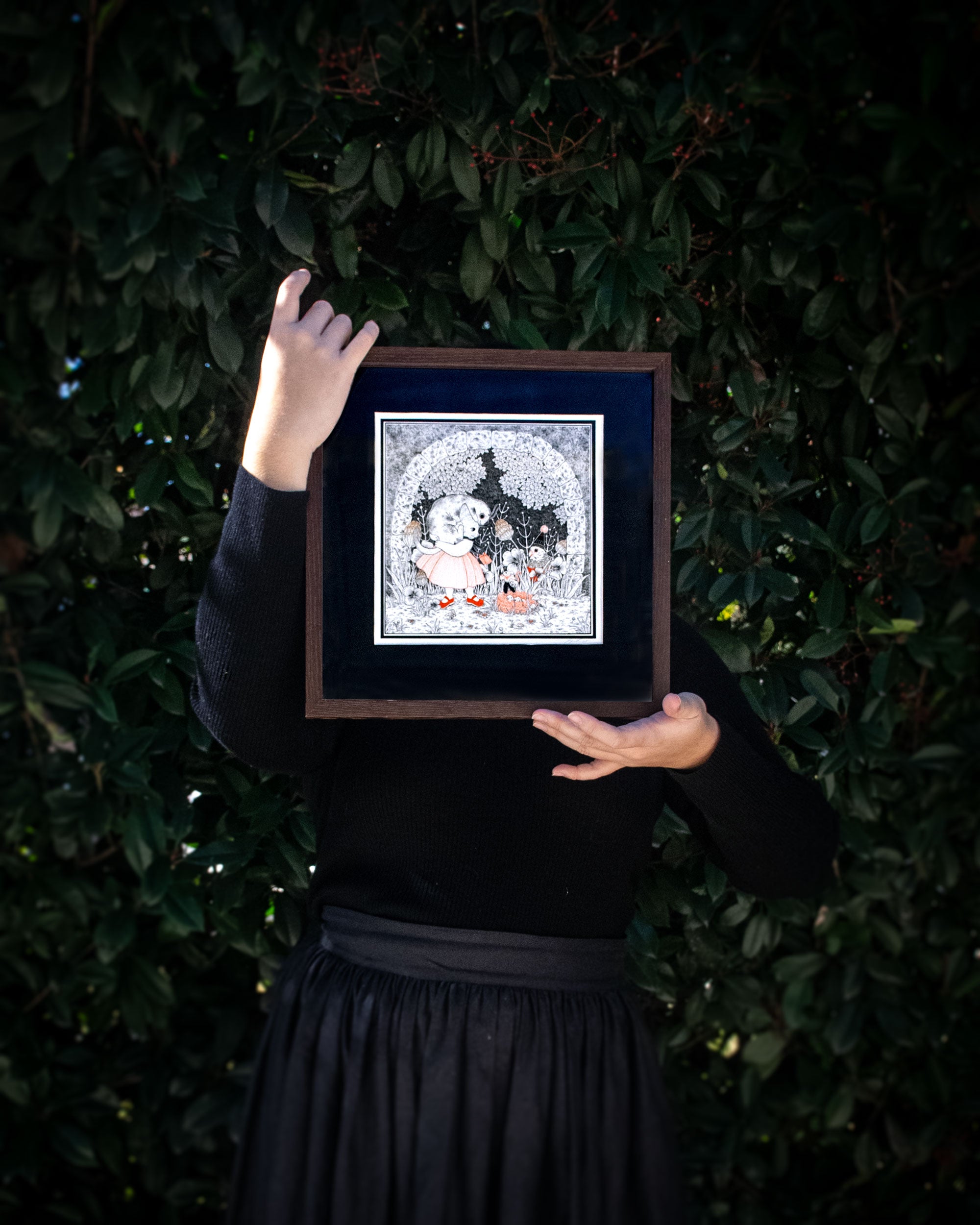 Artwork measures 8 x 8 inches, framed to 12.75 x 12.75 inches.