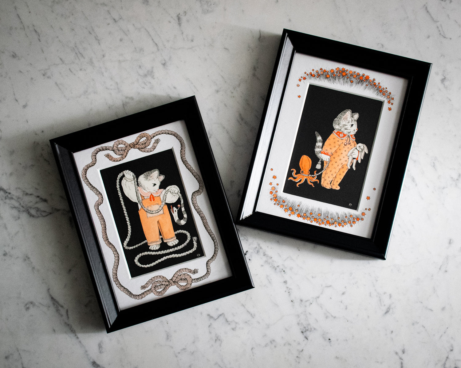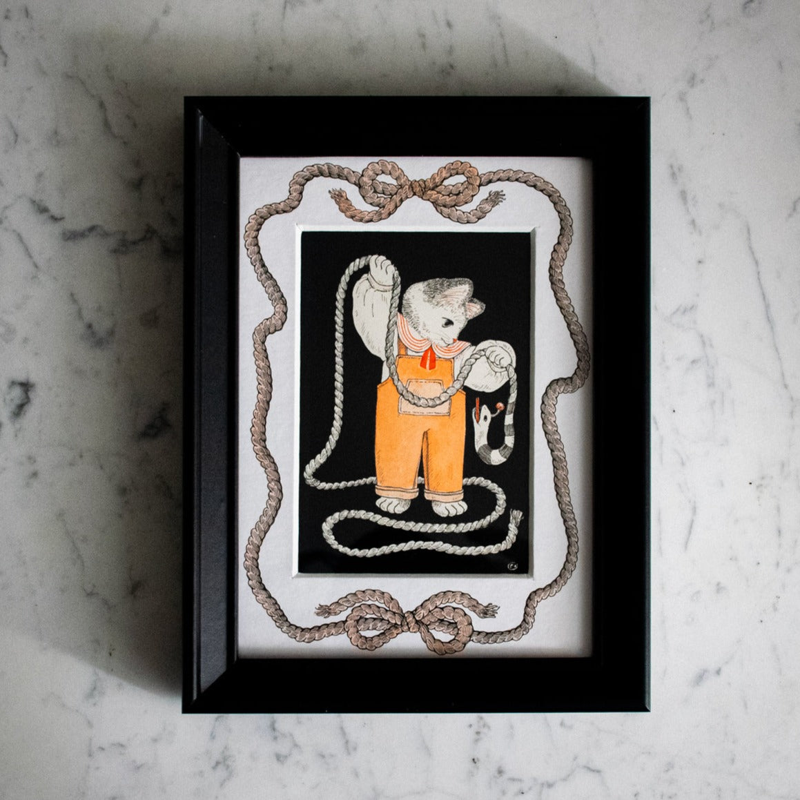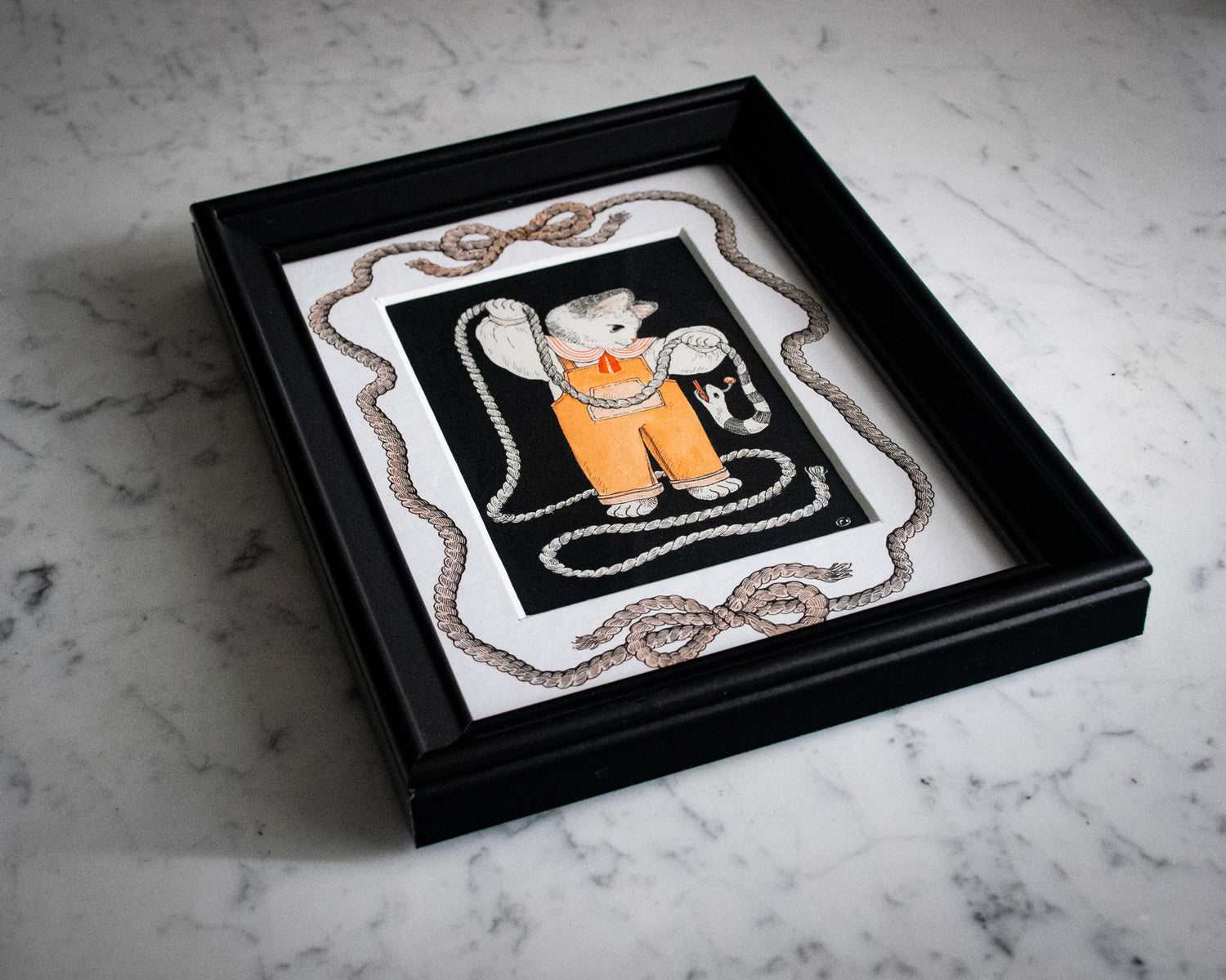 Artwork measures 5 x 7 inches, framed to 6 x 7.75 inches.