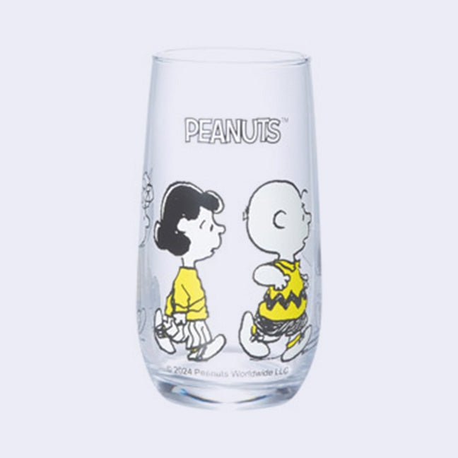 Featuring beloved art by illustrator Charles M. Schulz, this adorable Peanuts glass cup comes from Japan, with an eye catching visual of the Peanuts characters all hanging out! A simple color combo makes this cup all the more appealing.