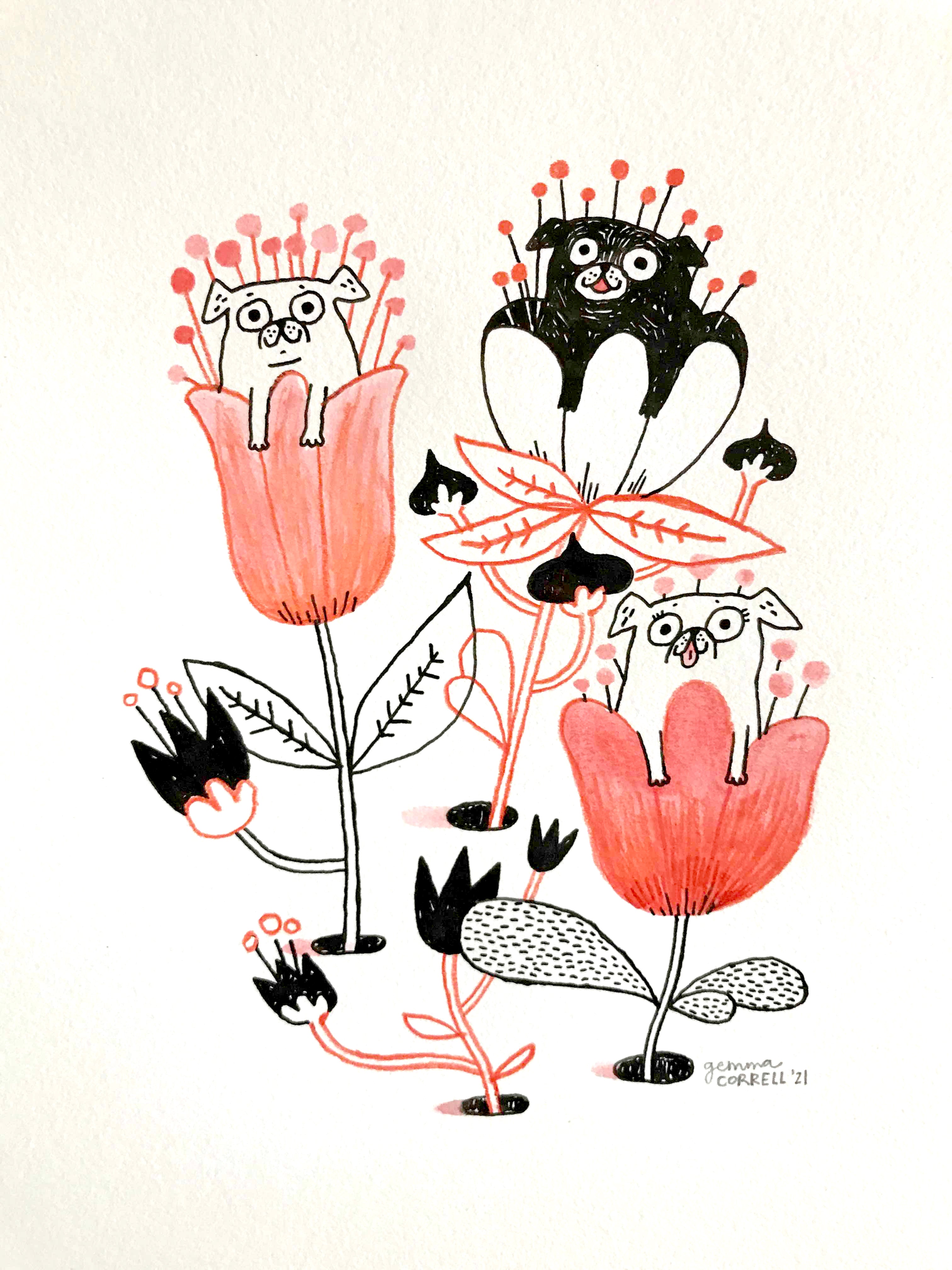 Plants and Flowers Show - Gemma Correll - "Les Carlins dans les Fleurs"