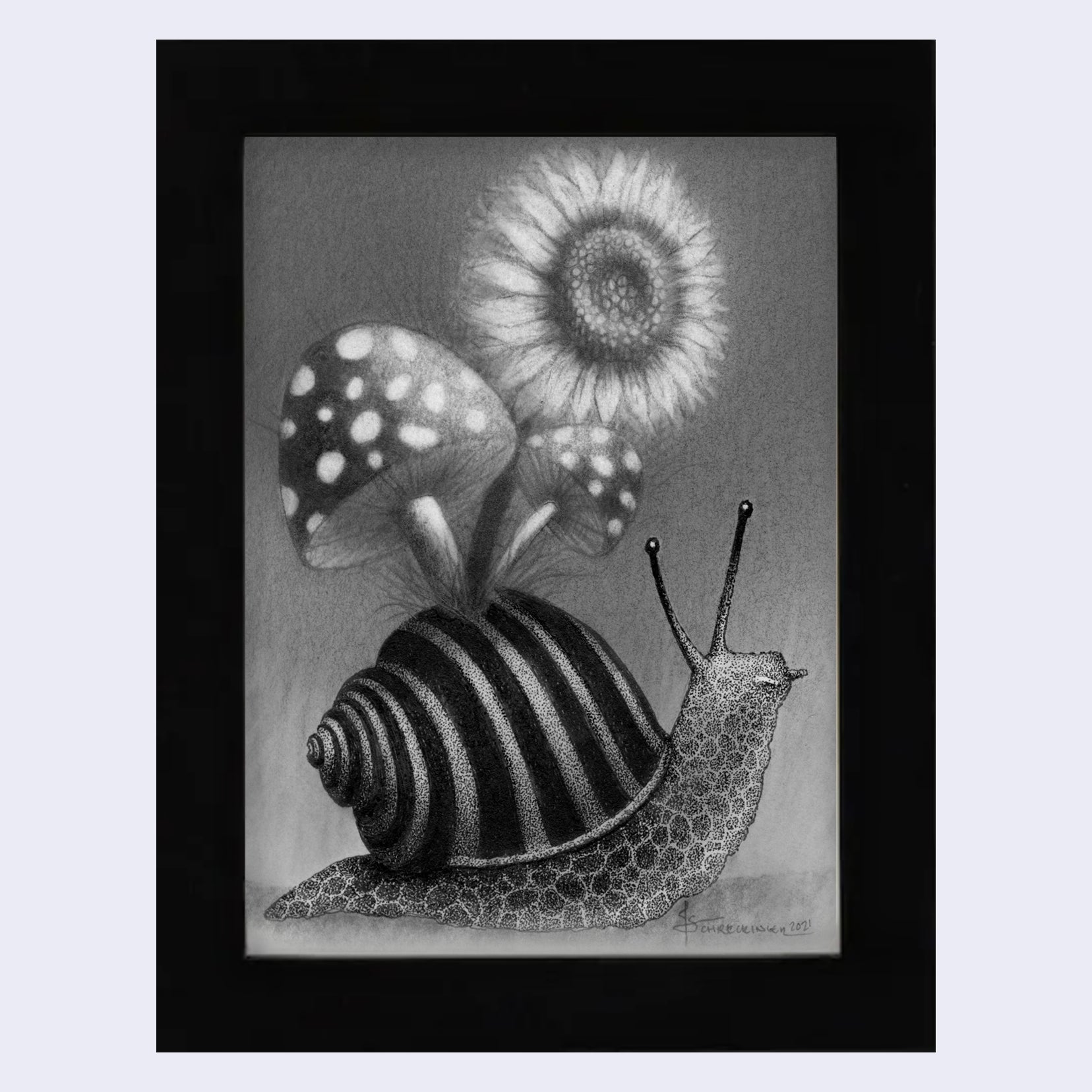 Pen, Ink, and graphite on archival paper. Piece is framed.