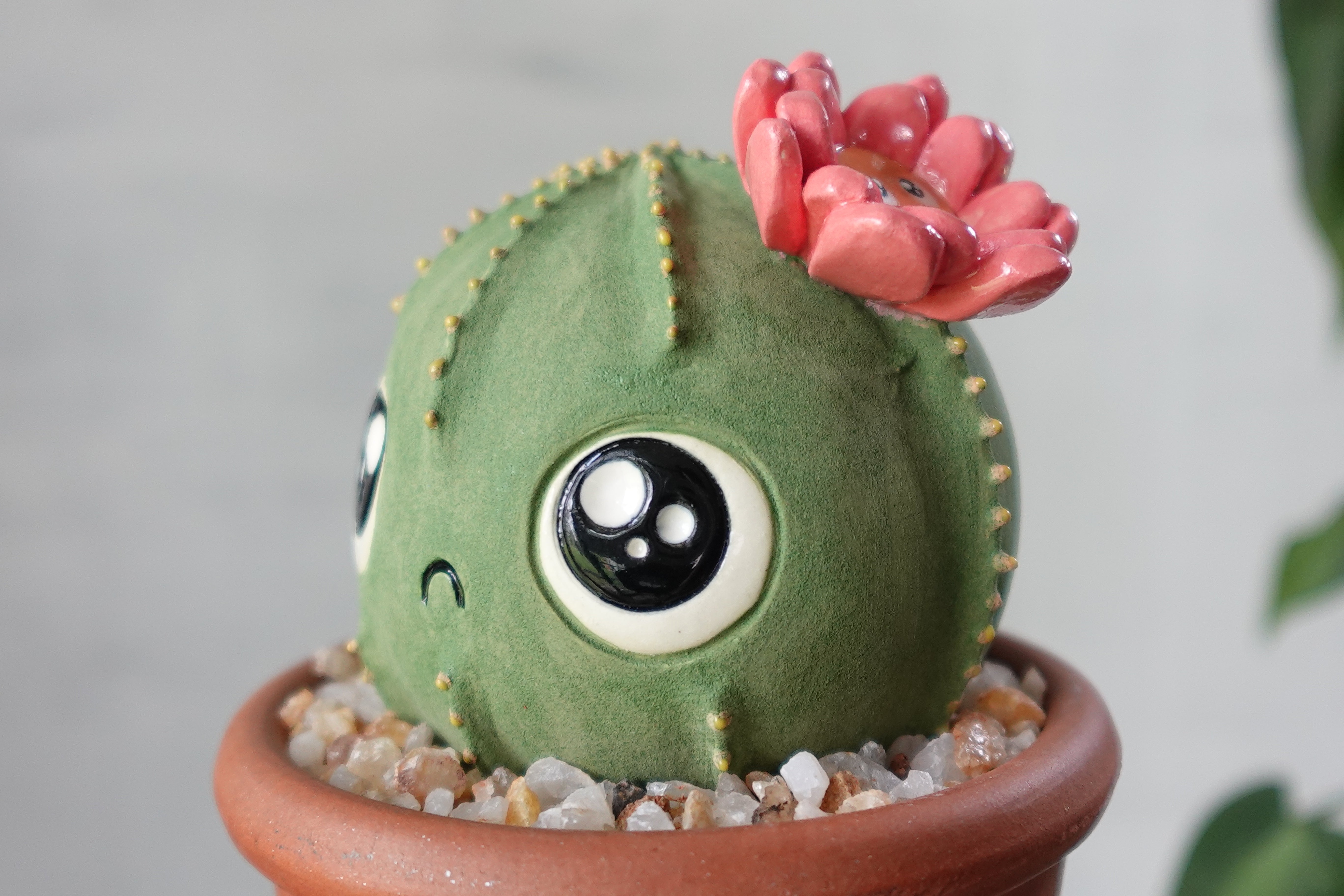 Hand built ceramic lowfire clay, underglaze and glaze, pebbles and terracotta pot.