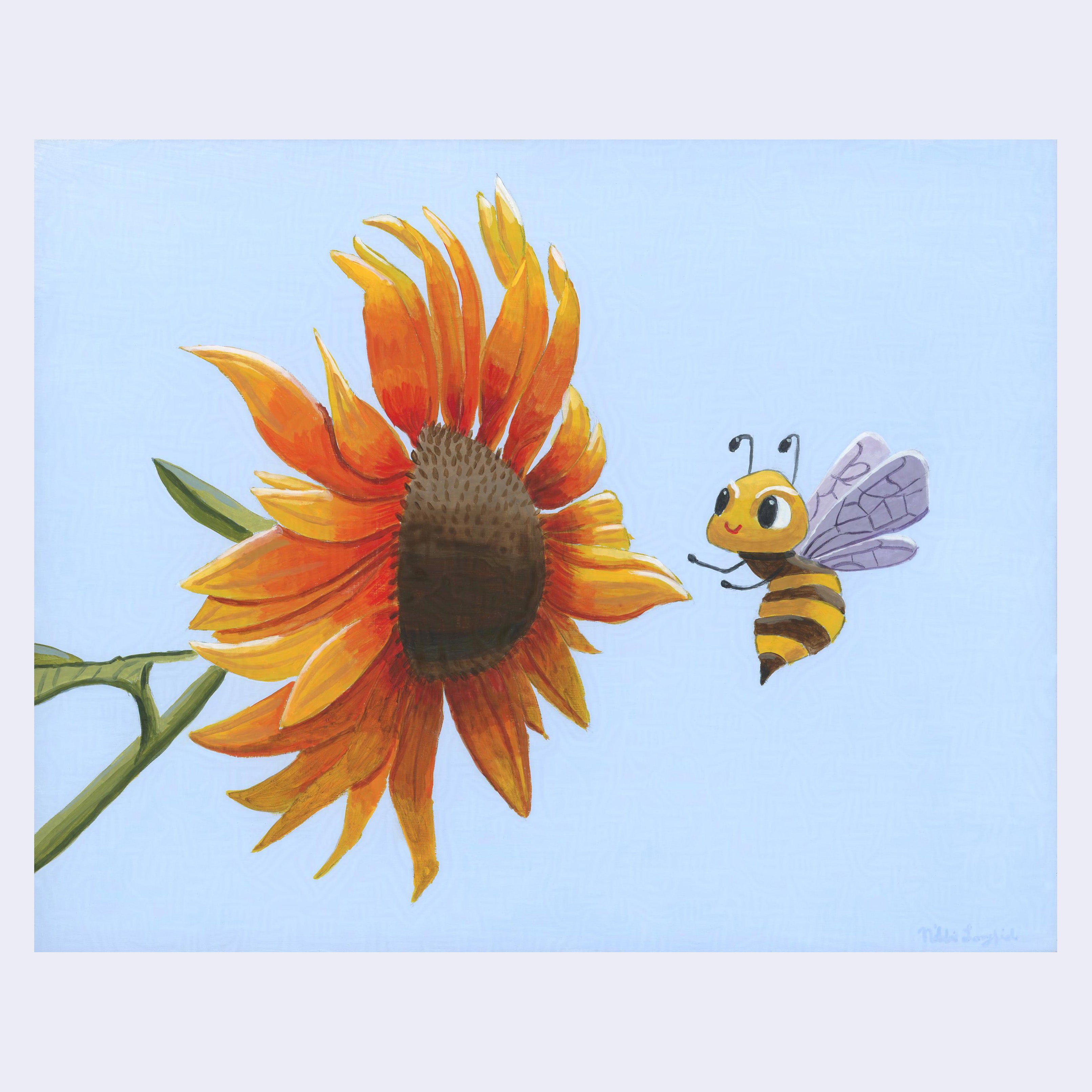 Nikki Longfish - "Sunflower Bee" Art Print (Plants & Flowers 2024)