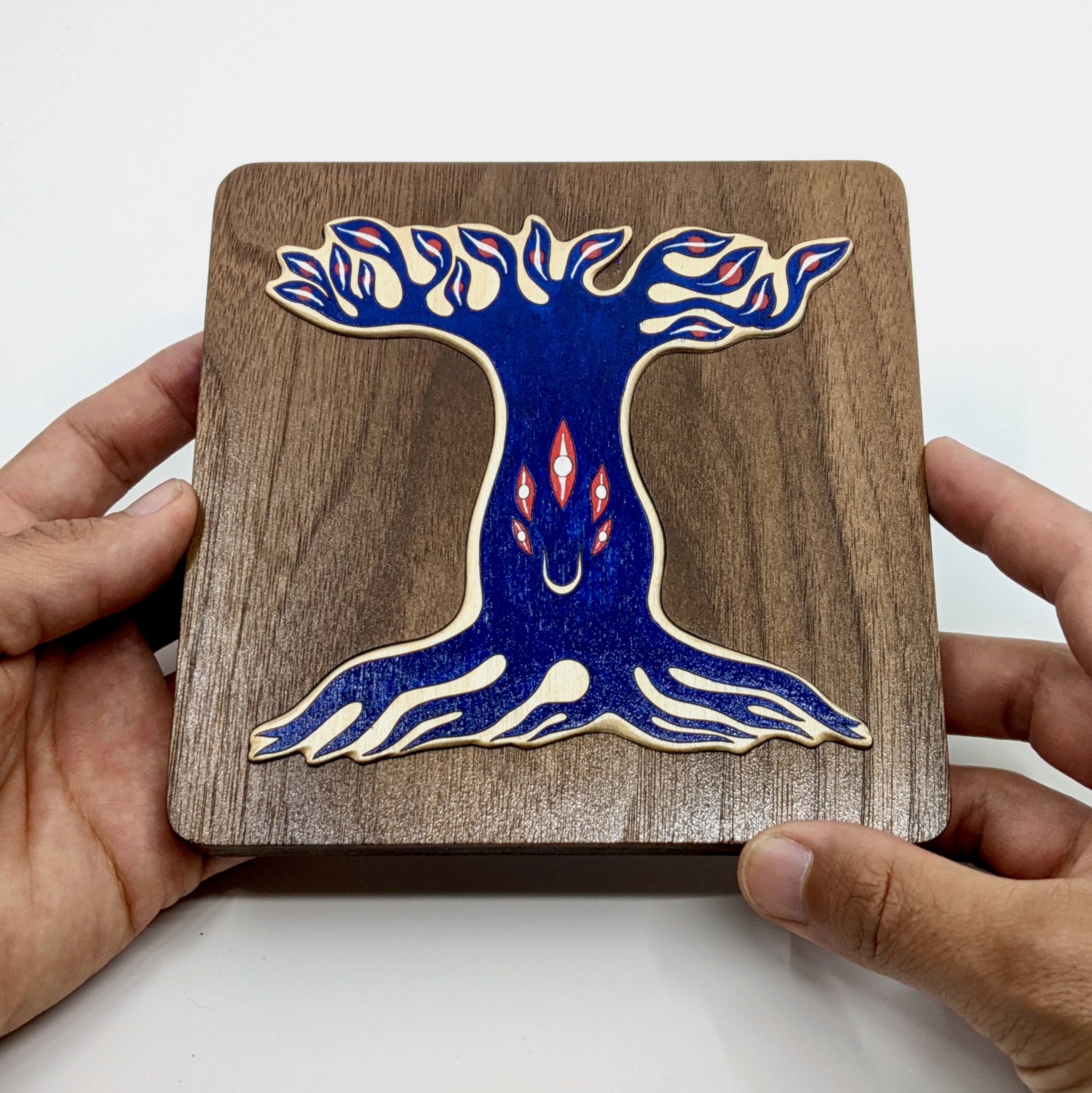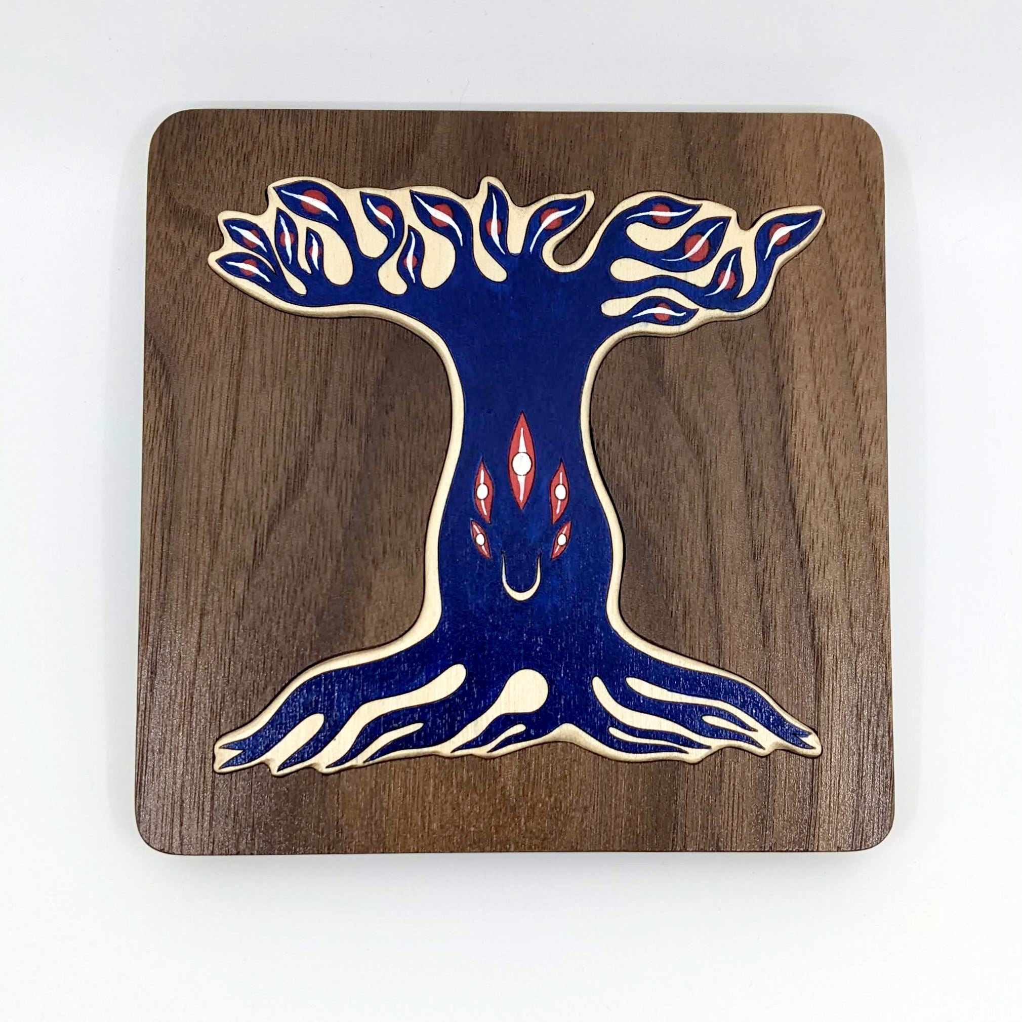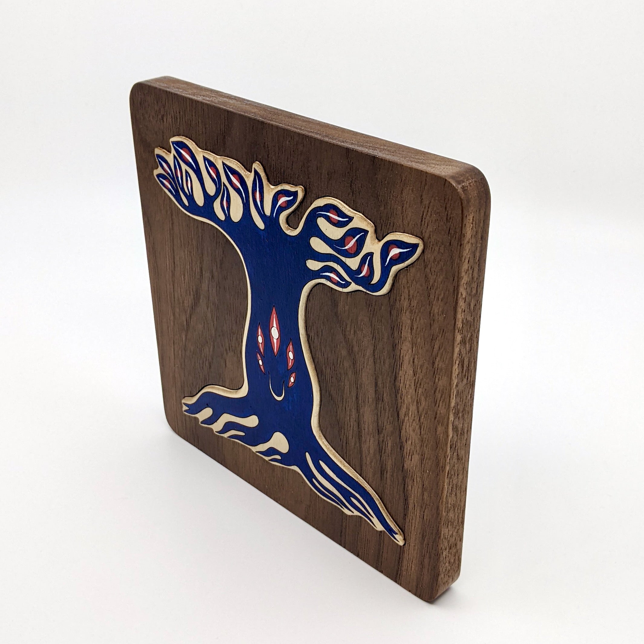 Walnut wood, Baltic Birch plywood, acrylic ink.