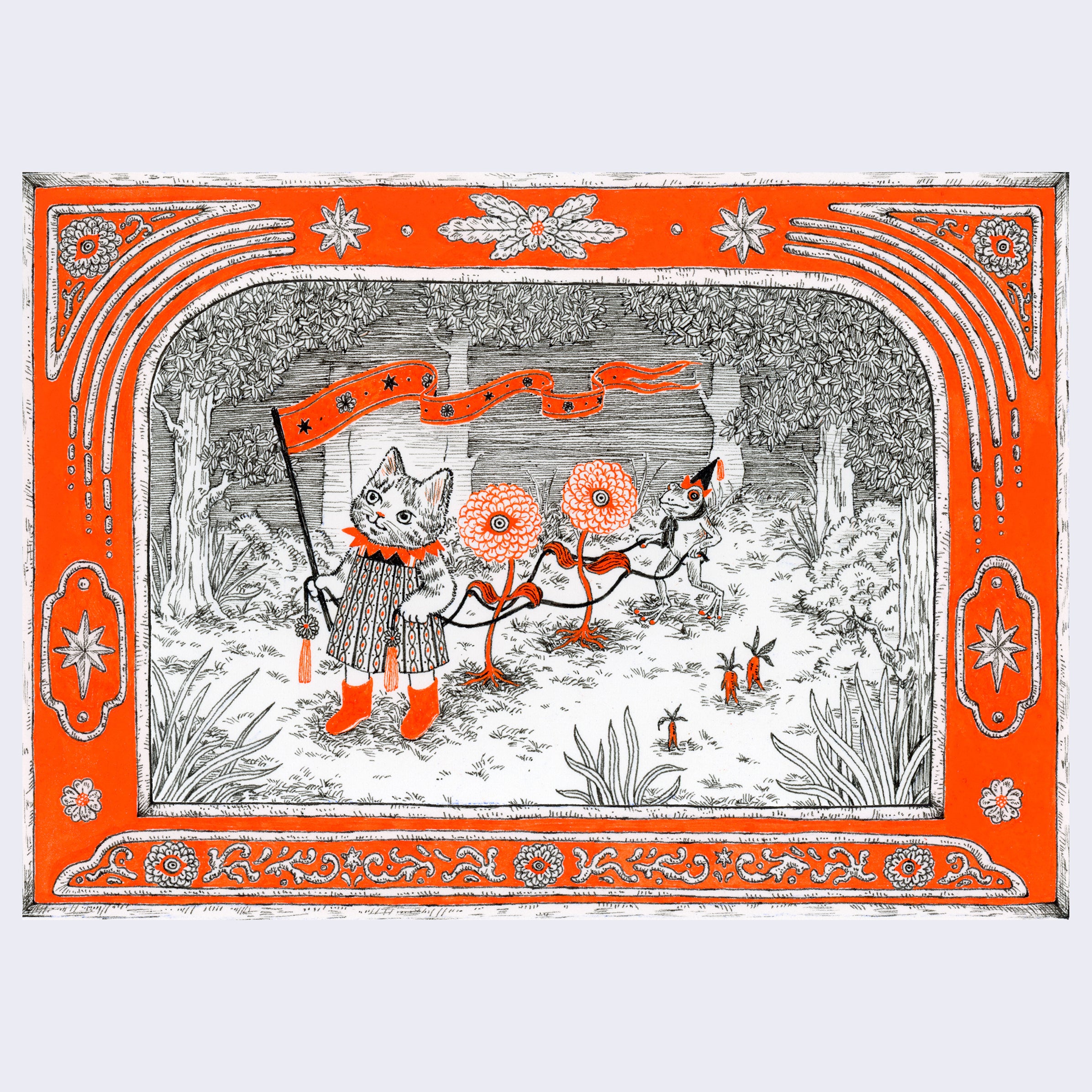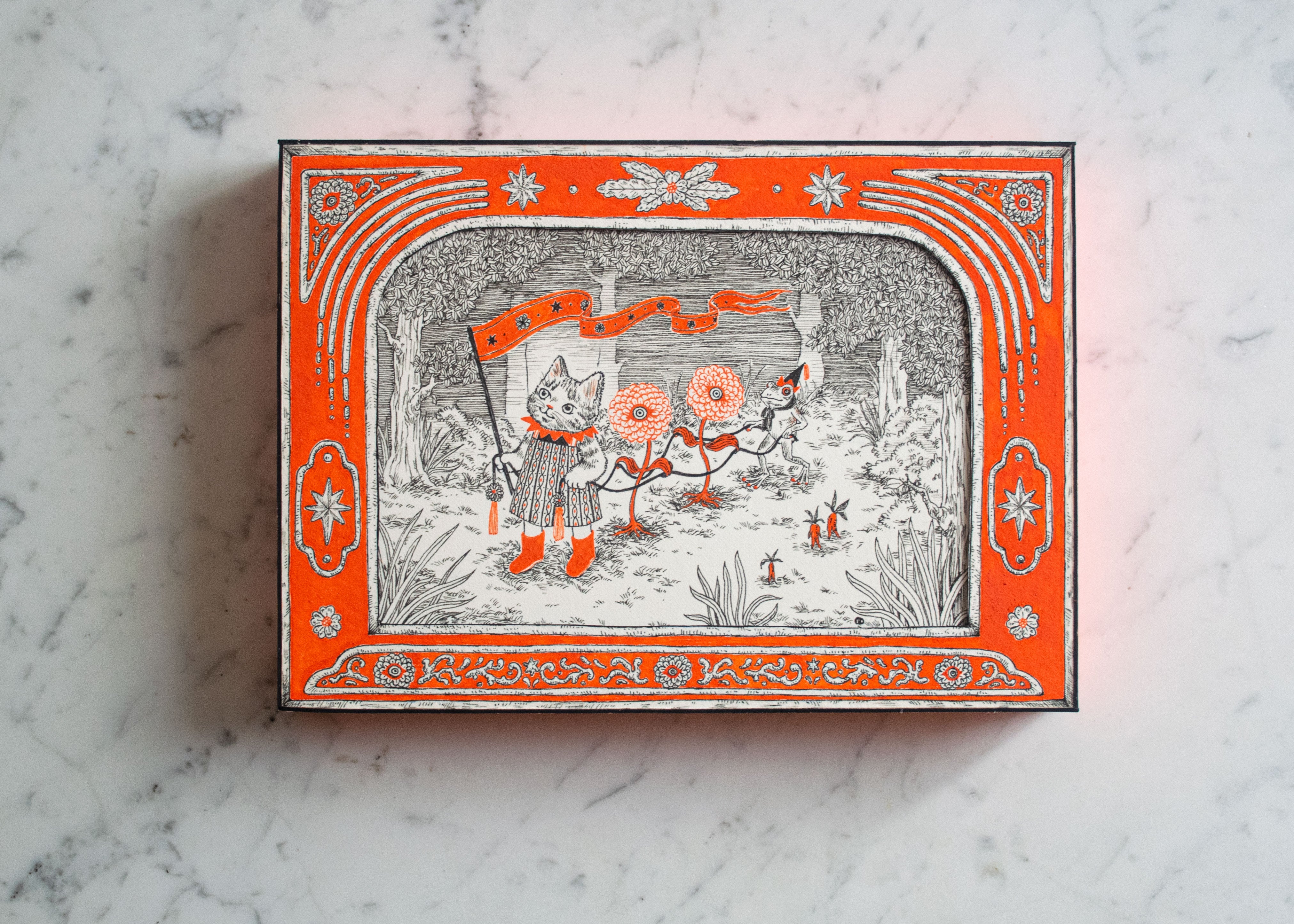 Pen and ink on 300lb Arches watercolor paper, mounted on wood panel.