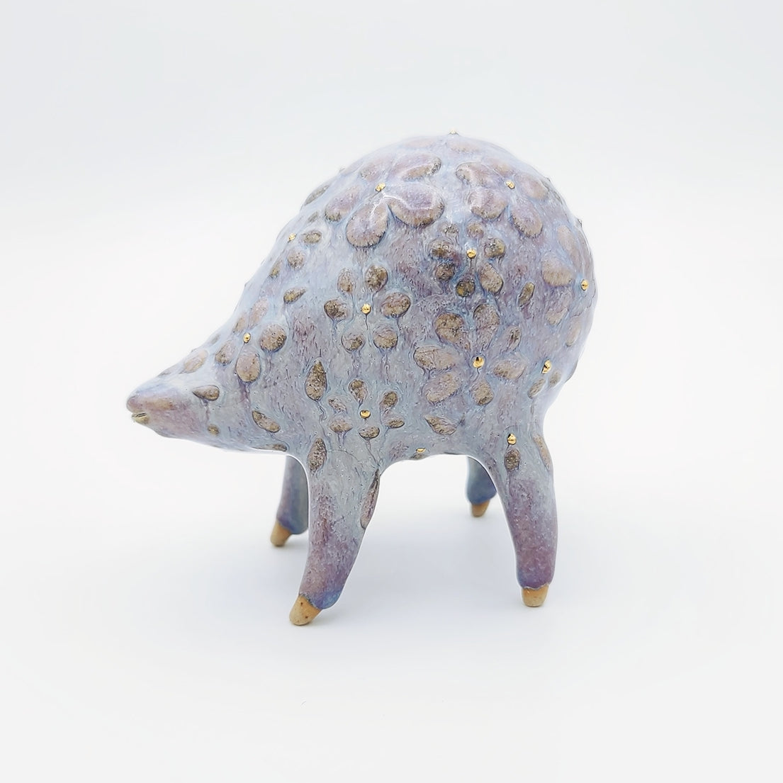Clay, glaze, gold lustre.