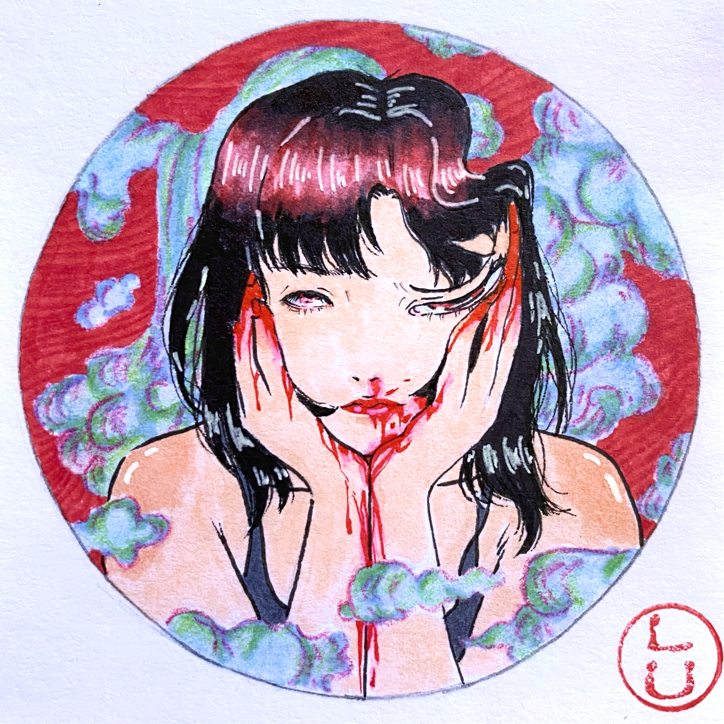 Watercolor, watercolor pencil, ink, and acrylic on heavyweight paper.