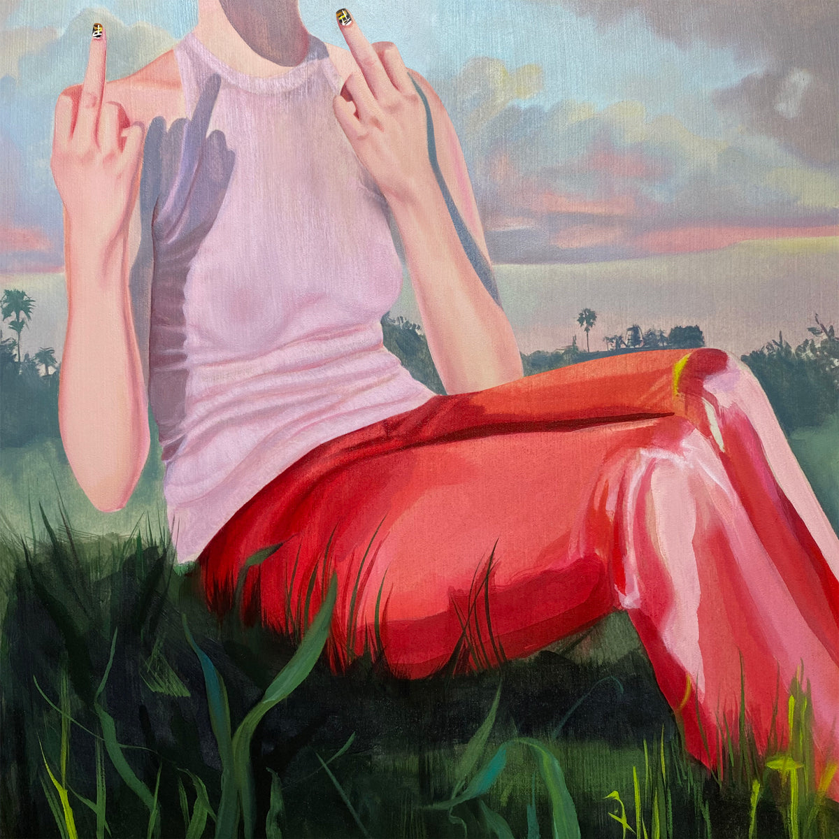 Acrylic and oil on panel. Comes with accompanying post-it note.