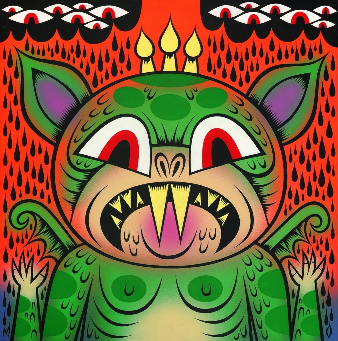 Acrylic and ink on wood panel.