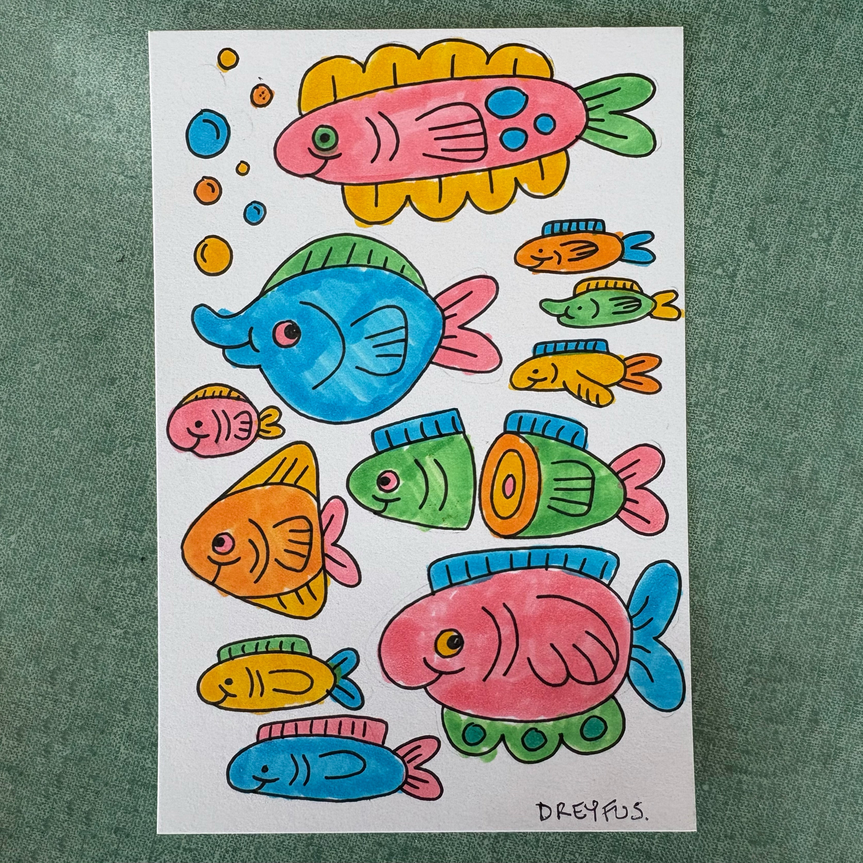 Raku (Mini) Gaki - Ashley Dreyfus - "Fish Frenzy"
