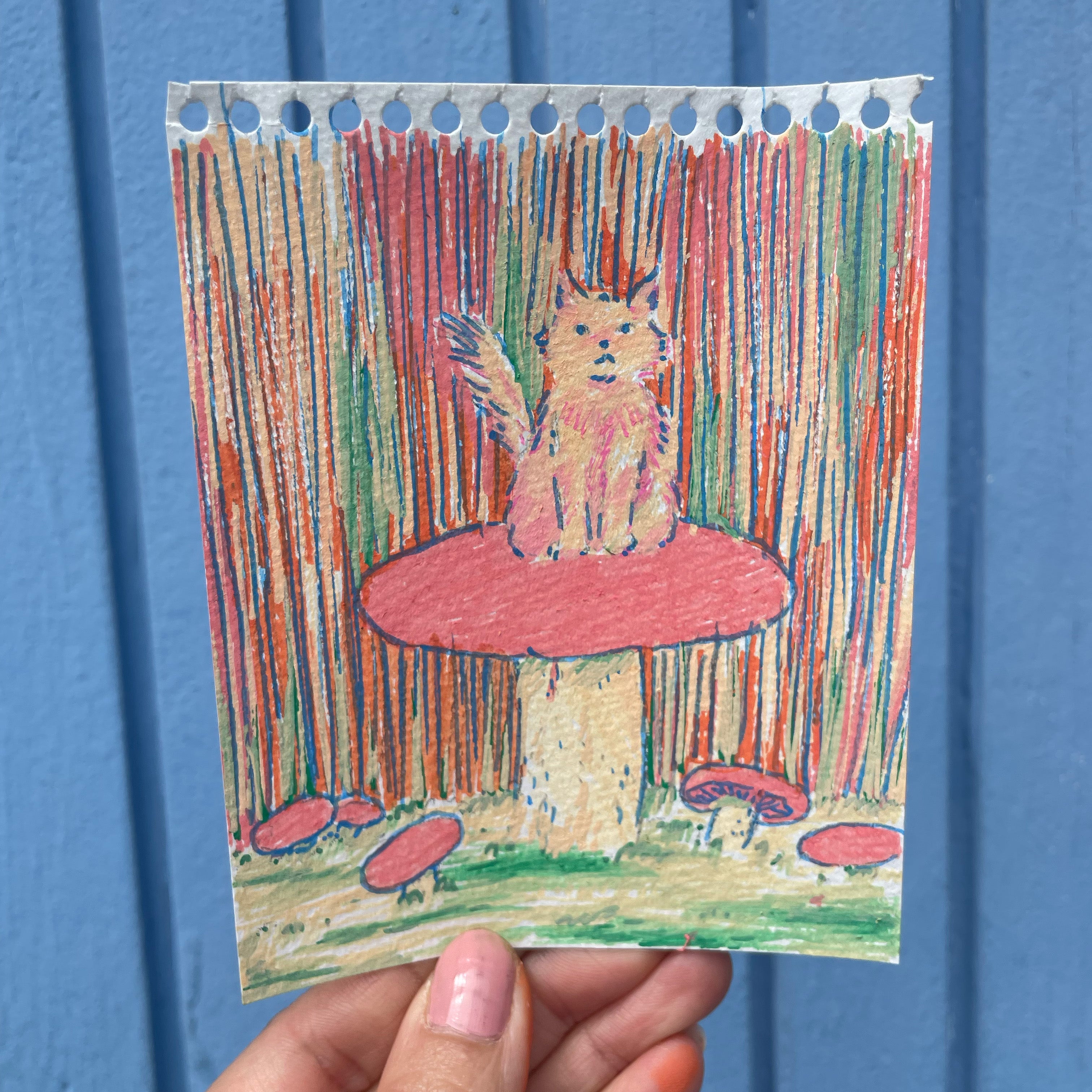 Raku (Mini) Gaki - Jen Tong - "Cat on Mushroom"