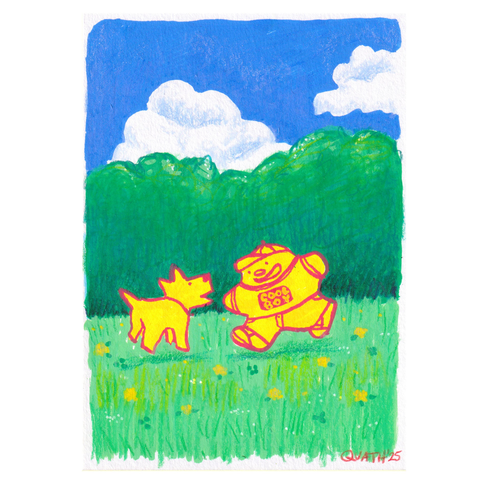 Raku (Mini) Gaki - Quathryn - "Cool Boy and Doggie Playing Outside"