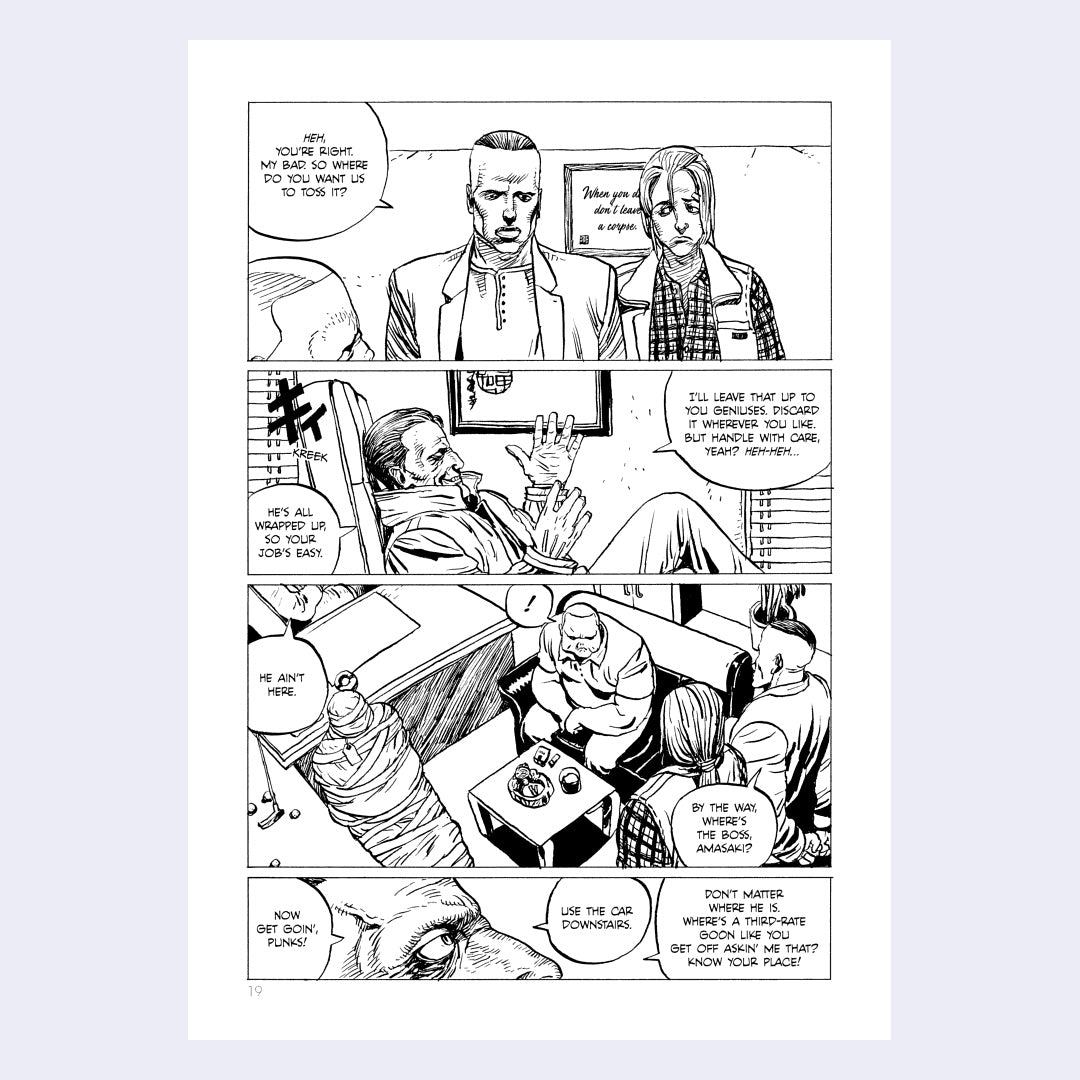 New father and troubled yakuza Rakuda gets a call from his colleagues tasking him to dispose of a random body. The job is fishy, but when you are a gangster sometimes you have to just do what you're told. But in this case, who gave him the job is the problem. A young hustler named Amazaki has tasked him to take care of a corpse without any info on who the body is and how to get rid of it. Turns out the body belongs to their gang lord... Now the gang and the cops are after Rakuda. And with danger around every corner, there are now very few moments for jokes in Rakuda's world.