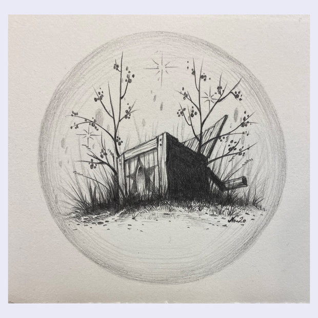 Paper measures 4 inches by 3.5 inches. Graphite on Arches paper.