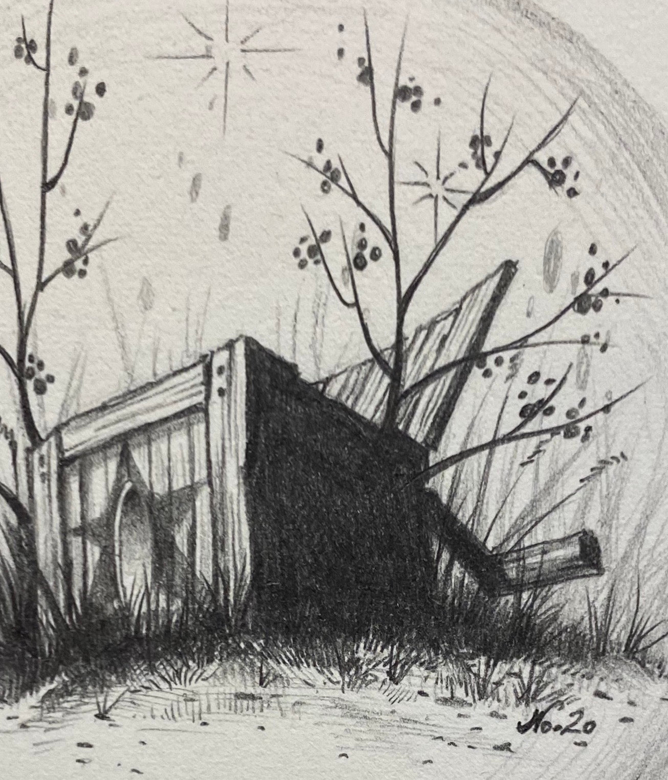 Paper measures 4 inches by 3.5 inches. Graphite on Arches paper.
