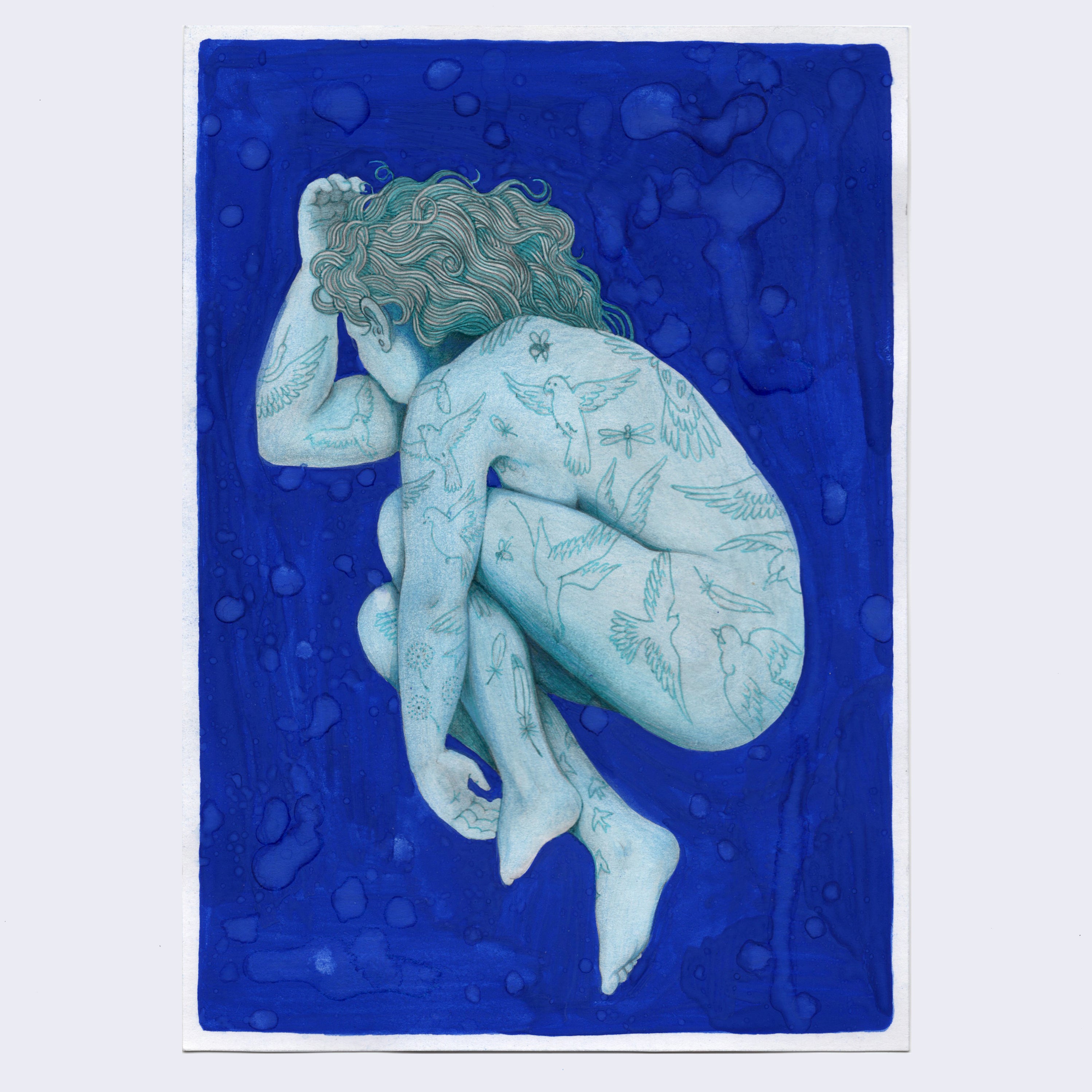 Watercolor and colored pencil.
