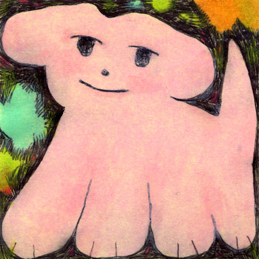 Ballpoint pen and colored pencil on Post-it. Piece is unframed.