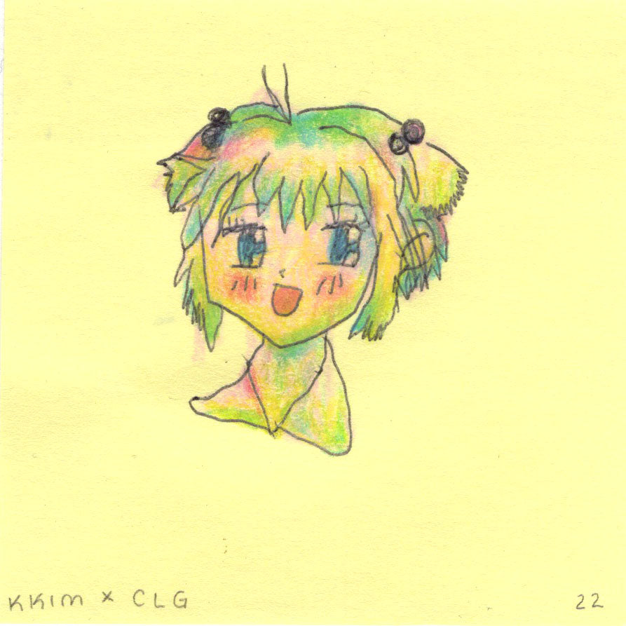 Ballpoint pen and colored pencil on Post-it.