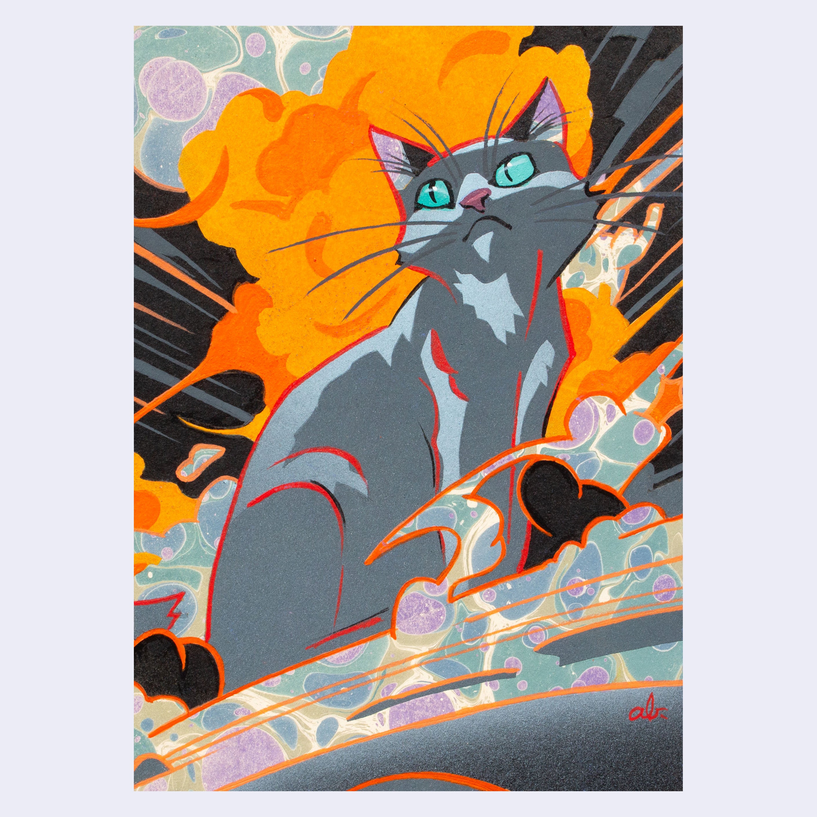 Mixed media (Acrylics on vintage hand marbled paper).