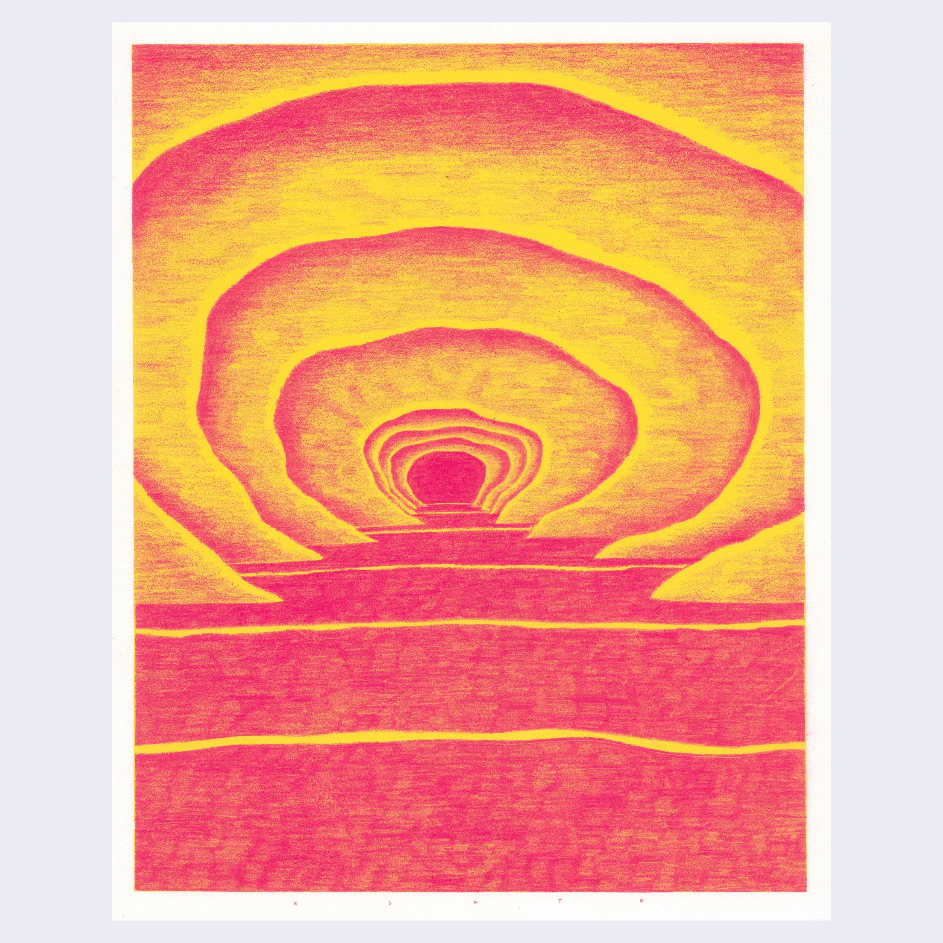 Colored pencil on screen print. Piece is framed.
