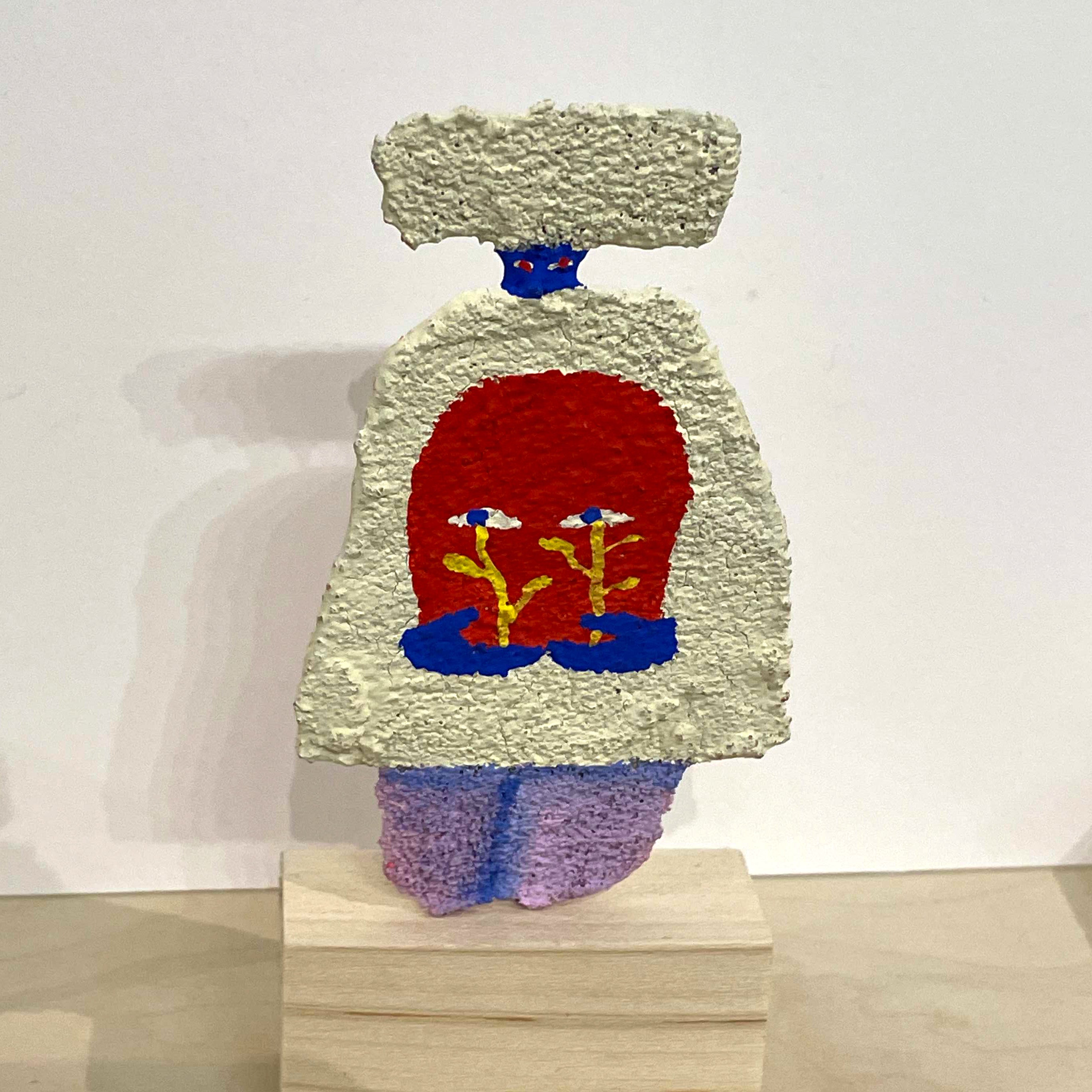 Paper sculpture, acrylic, pumice gel, and gouache.