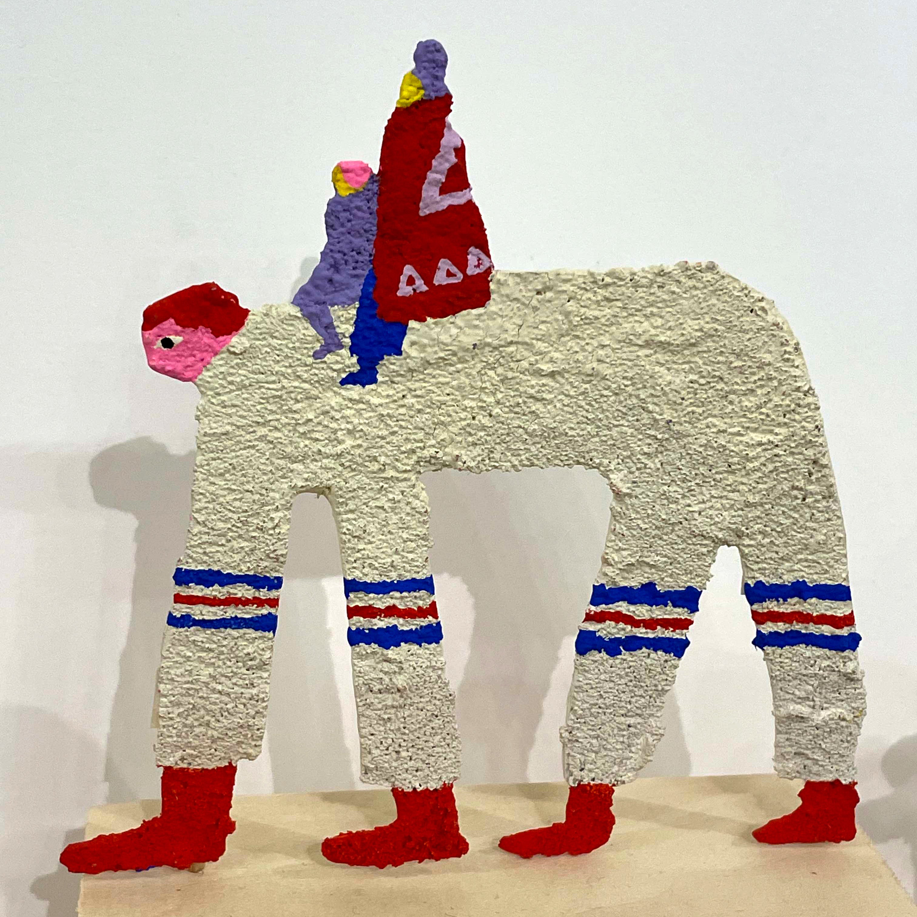 Paper sculpture, acrylic, pumice gel, and gouache.