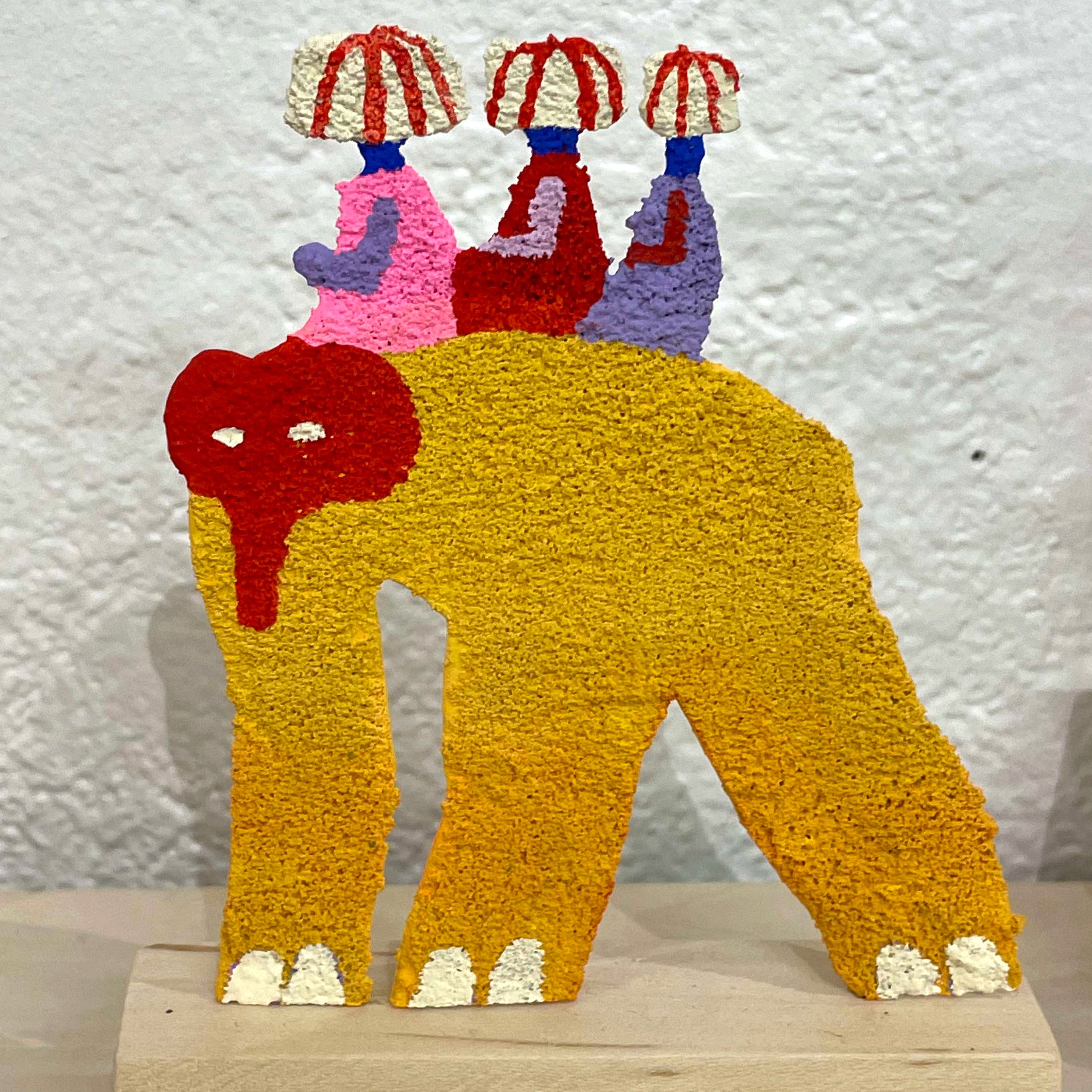 Paper sculpture, acrylic, pumice gel, and gouache.